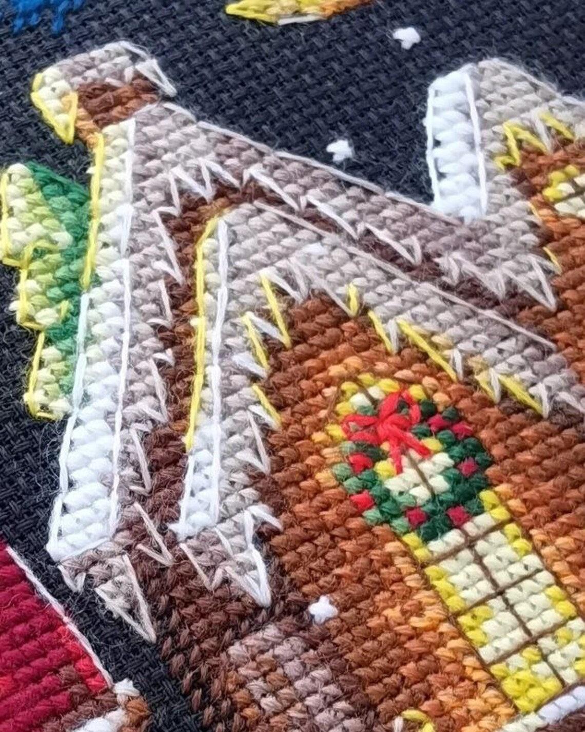 Kit contains: Canvas Zweigart 14ct. black AIDA, treads: wool/acrylic threads 21 colors. Instruction, color chart, needle 1 type. Dimensions 15*21cm/6" x 8¼"inches.