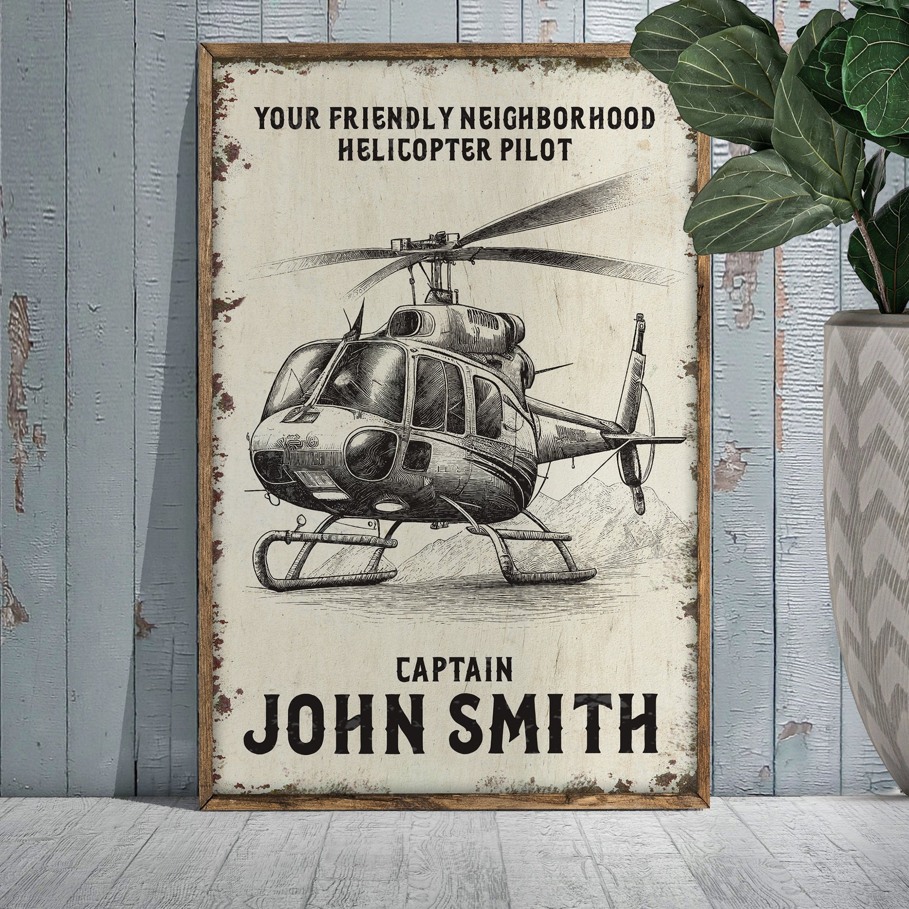 With its elegant design and personalized touch, this Helicopter Pilot Name Sign will surely be a conversation starter and a cherished item for years. Crafted from high-quality canvas, this sign is built to last and will look great in any room.
