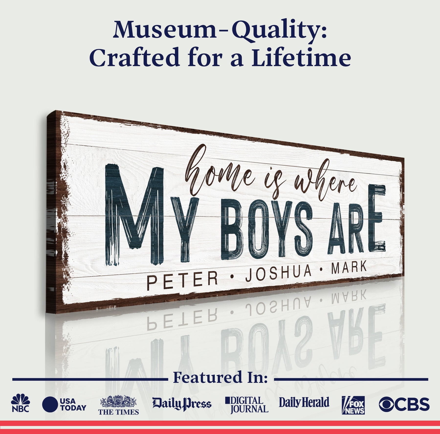 Home is where the heart is, and where our boys make it a haven. Show your sons how much they mean to you with our customizable "Home Is Where My Boys Are" sign. Featuring a sophisticated, artsy design, it’s a conversation starter and a daily reminder of your love. Let your sons be the beating heart of your home.