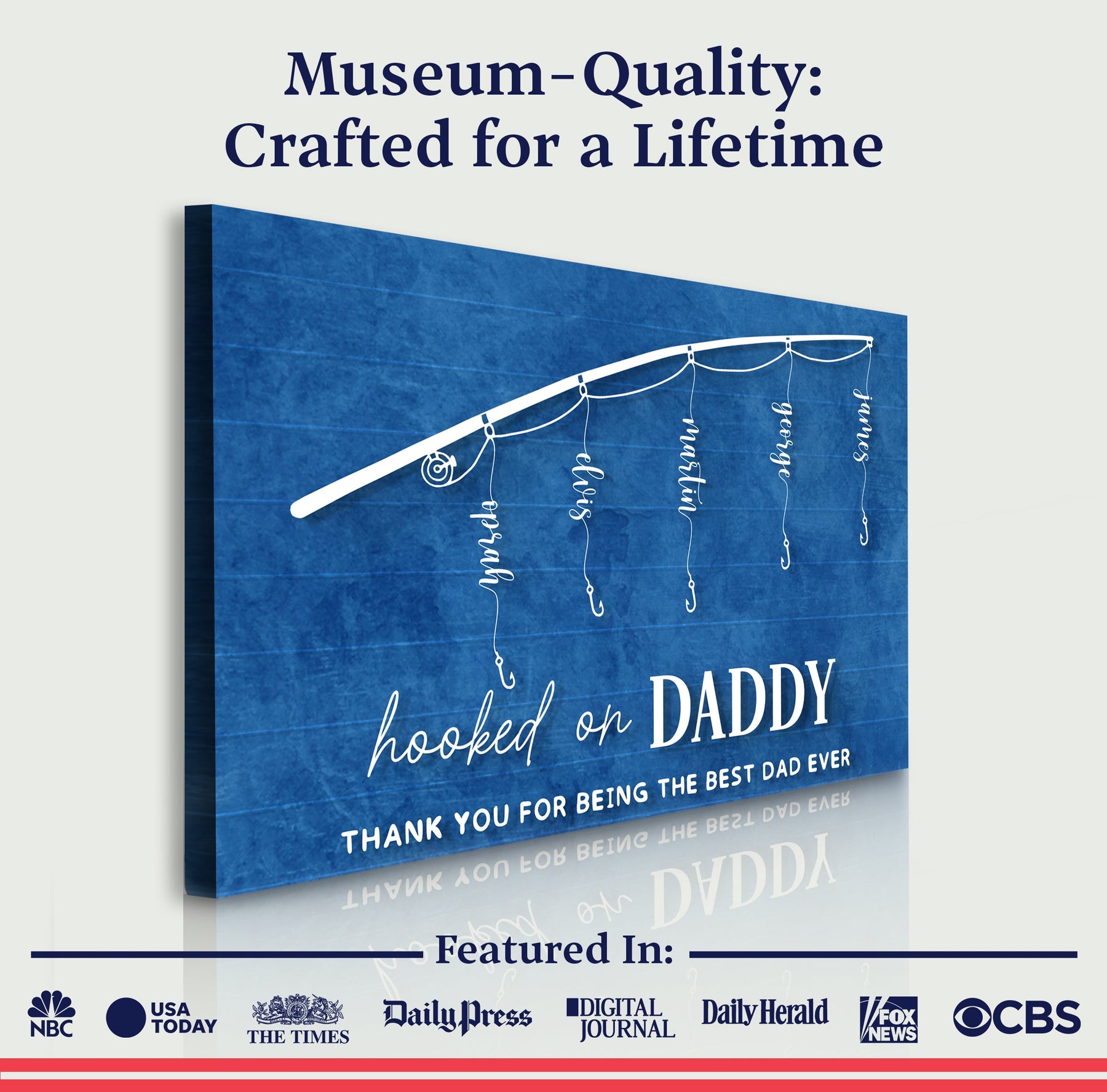 Celebrate your husband with this "Hooked On Daddy" canvas, a beautiful gift that captures your love and appreciation. Featuring a touching message and customizable name, it’s the perfect way to remind him how much he means to you. Ideal for anniversaries, birthdays, or just because, this artwork adds a personal and emotional touch to your home, making your husband feel truly cherished and loved daily.