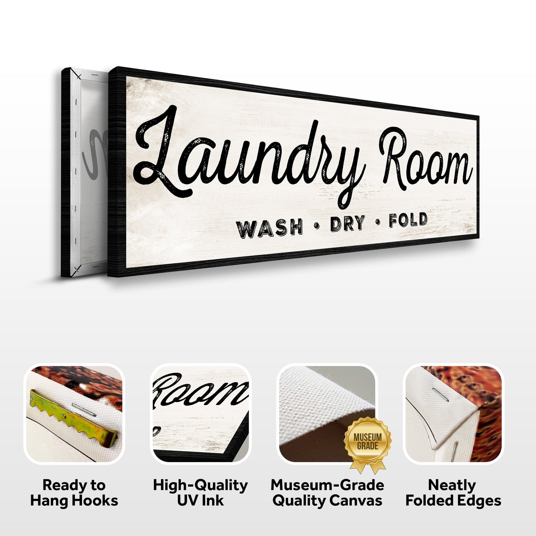 Laundry day doesn't have to be a drag when you've got the Laundry Room Wash Dry Fold sign hanging in your room. This piece of Laundry Room Wash Dry Fold wall art is perfect for adding a touch of sophistication and style to your space. The Laundry Room Wash Dry Fold canvas print is available in three sizes, so you can choose the one that best fits your space. Whether you're looking for a small accent or a large statement piece, this sign is the perfect way to add some creativity and life to your laundry room.