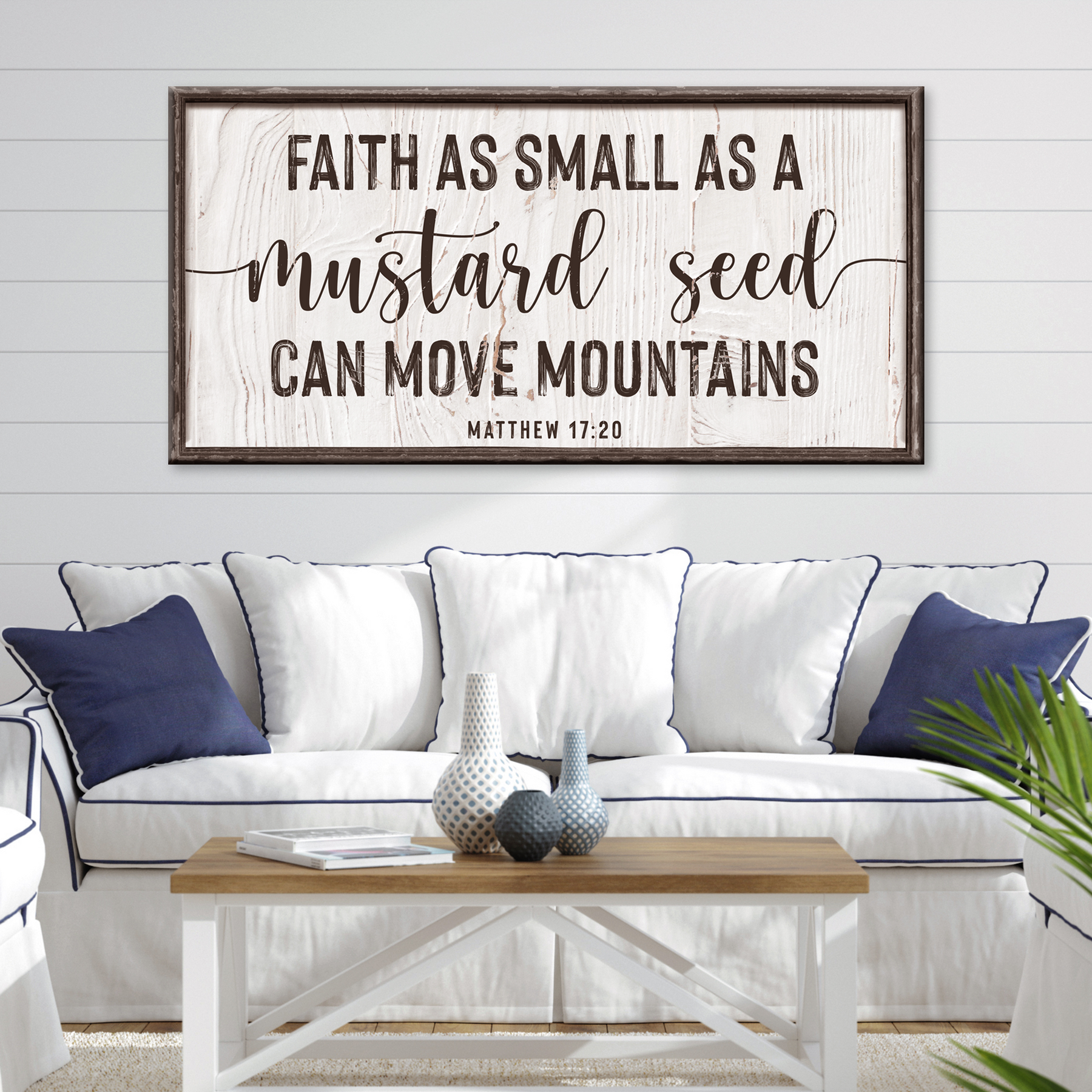 The Matthew 17:20 - Faith Can Move Mountains Sign canvas wall art has two woody styles and three sizes. The canvas print is handcrafted from high-quality materials that are sure to stand the test of time!