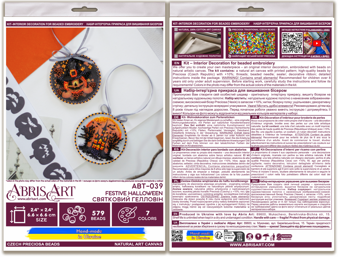 In each carefully assembled box Decoration Festive Halloween (Interior Decoration) after purchase and delivery you will find: a large piece of natural art canvas with a printed image-scheme (fabric for embroidery) larger than the size of the picture - 66 x 132 mm. - with enough stock to make it convenient to embroider and design the finished picture! The world's best beads Preciosa Ornela (Czech Republic), with "stock" - more than 579 beads, high-quality bead needles from Japan , and most importantly - detailed instructions, the scheme for beadwork with a key, specially developed by our designers for each plot separately and already applied to the canvas!