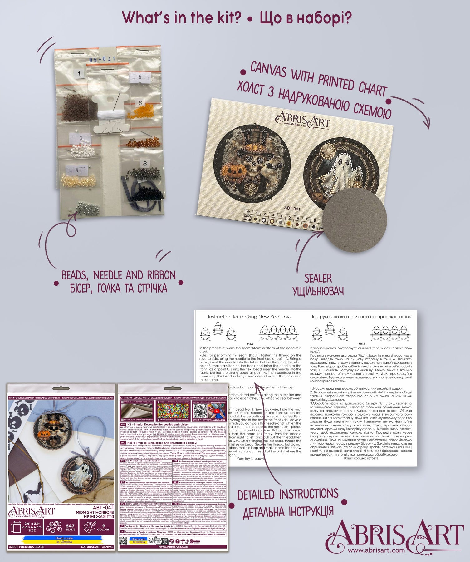 In each carefully assembled box Decoration Midnight Horrors (Interior Decoration) after purchase and delivery you will find: a large piece of natural art canvas with a printed image-scheme (fabric for embroidery) larger than the size of the picture - 66 x 132 mm. - with enough stock to make it convenient to embroider and design the finished picture! The world's best beads Preciosa Ornela (Czech Republic), with "stock" - more than 547 beads, high-quality bead needles from Japan , and most importantly - detailed instructions, the scheme for beadwork with a key, specially developed by our designers for each plot separately and already applied to the canvas!