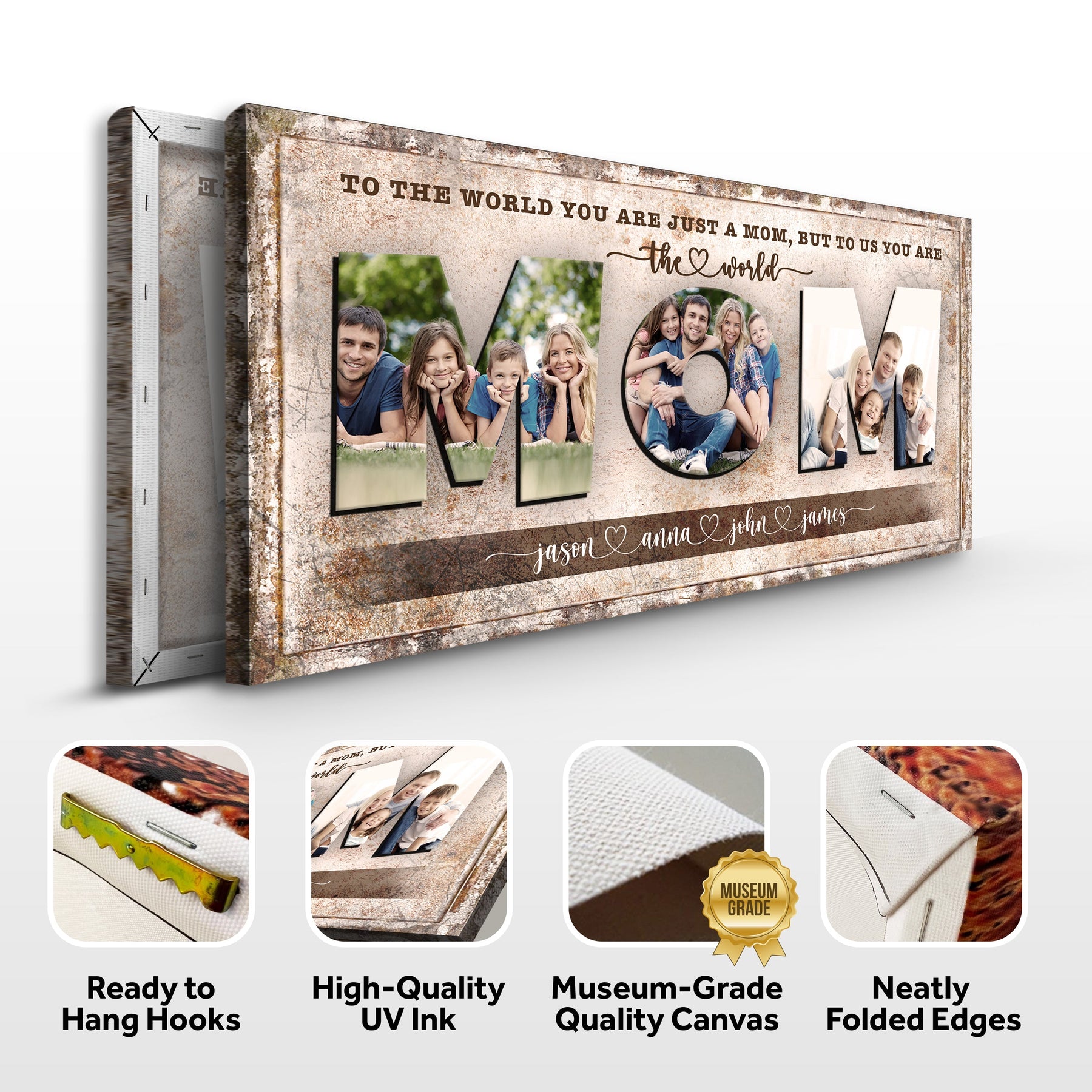 The Mom, To Us You Are The World wall art is a high-quality canvas and UV-resistant printing that makes it as enduring as a mother's love. Get your Mom, To Us You Are The World sign right away, whether it's Mother's Day, your mum's birthday, or any other day.