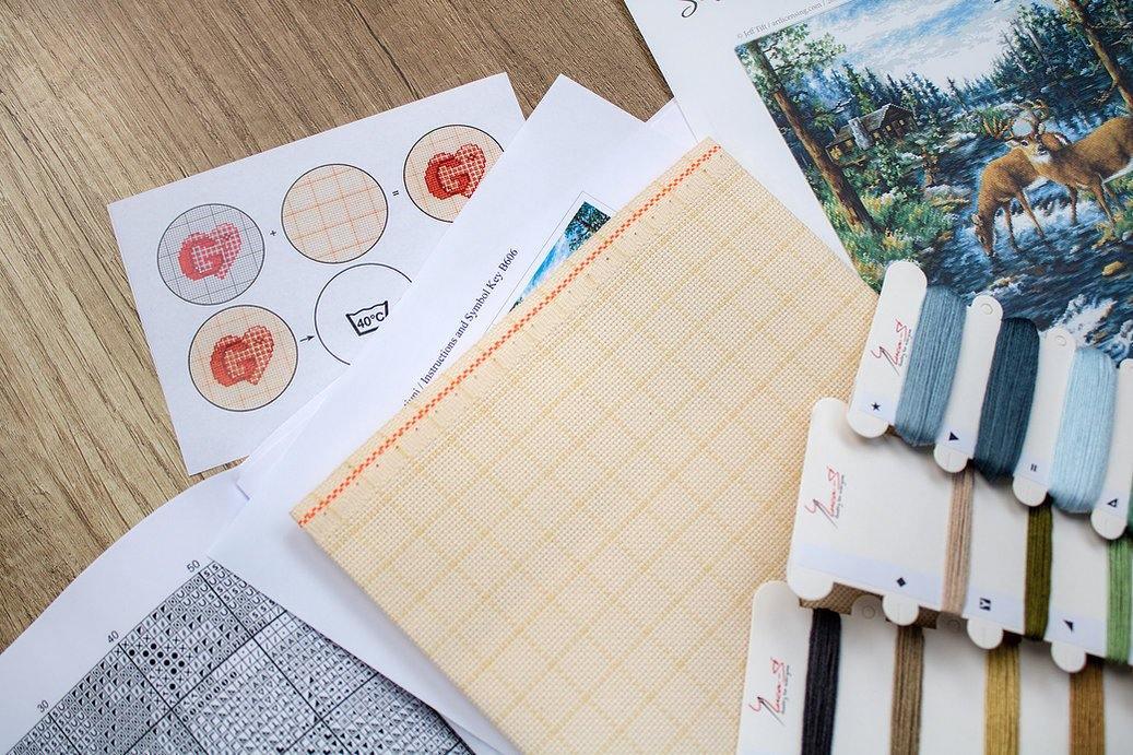 Kit contains:canvas(Aida 18 squared Zw.t), Anchor(49 colours), needle and instruction. Dimensions 34*37cm / 13,39*14,57in.