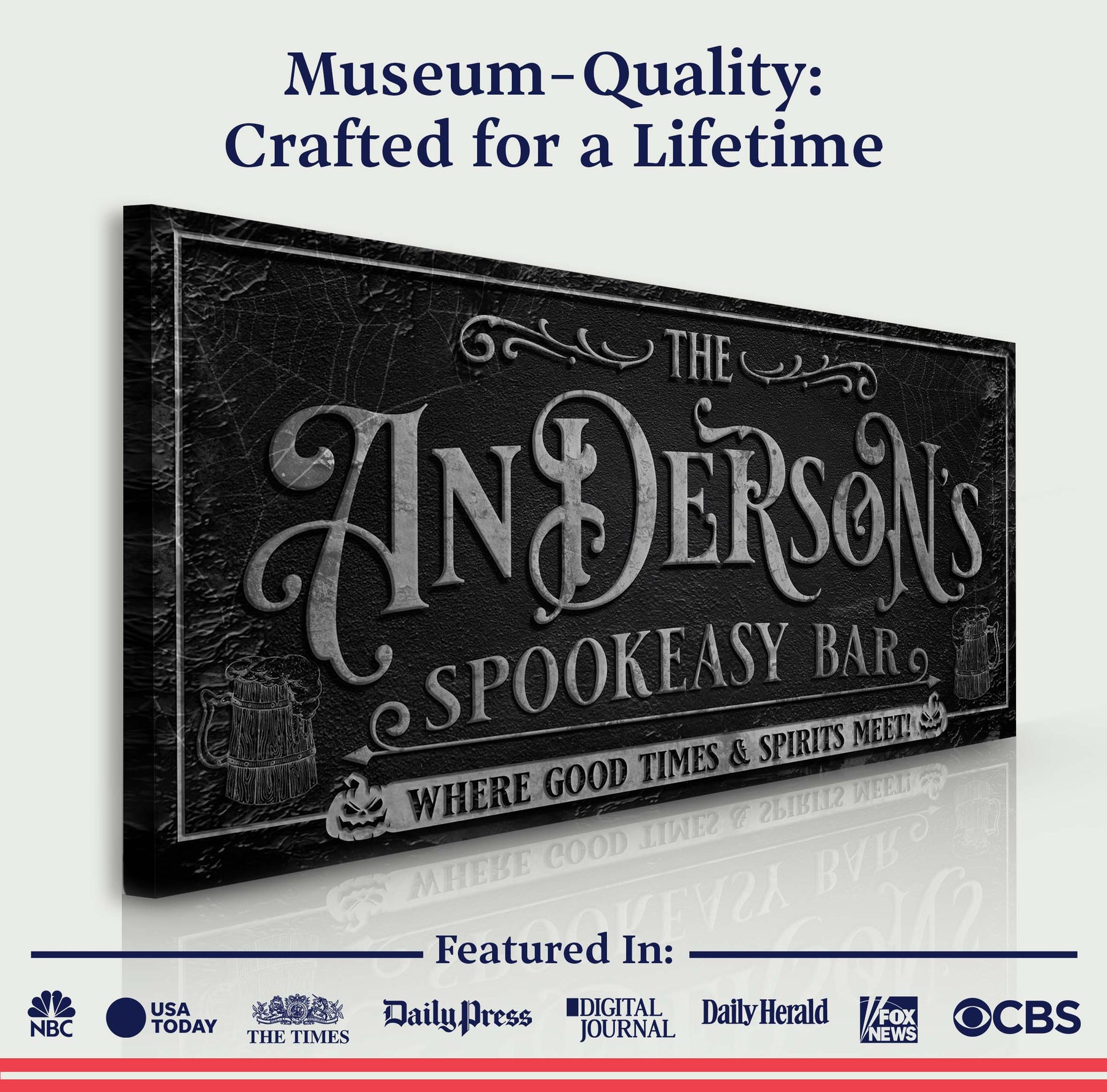 Looking for a way to add some personality to your bar space? Look no further than our Family Speakeasy Sign canvas wall art! This bar sign is the perfect way to personalize your space and make it your own. This sign will turn heads and get people talking with its rustic-inspired design.