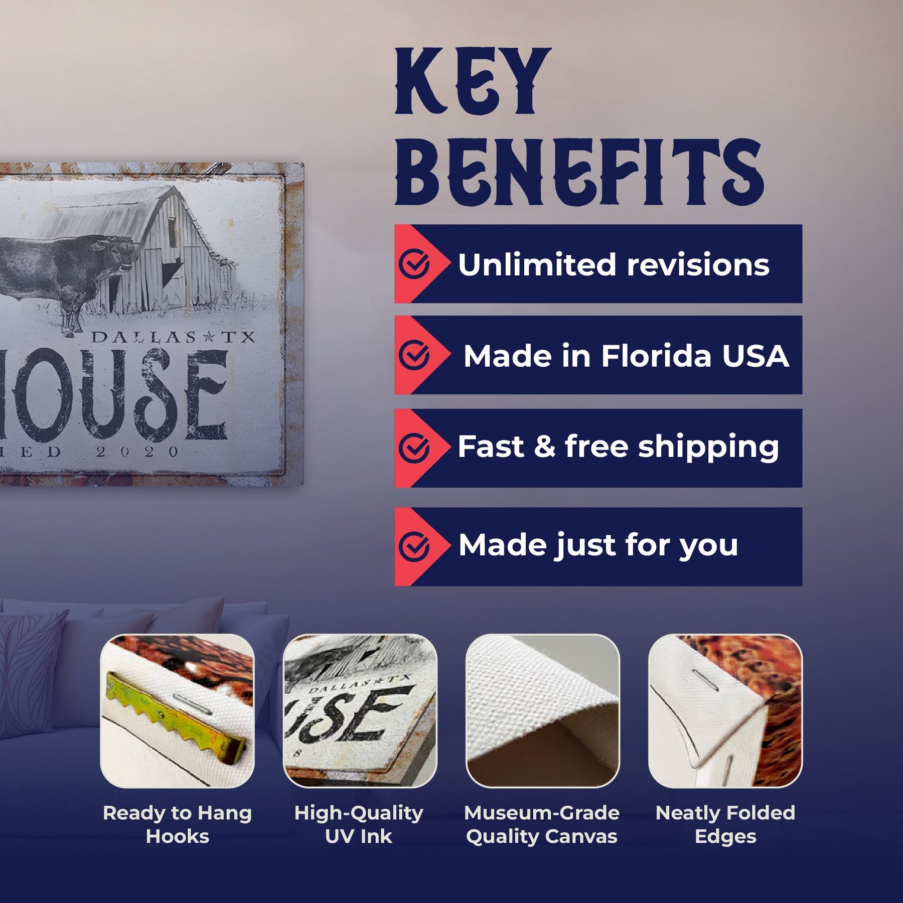 Made with pride in the USA, this sign features 1.5” thick premium canvas and UV-resistant ink, ensuring durability and a lasting impression.