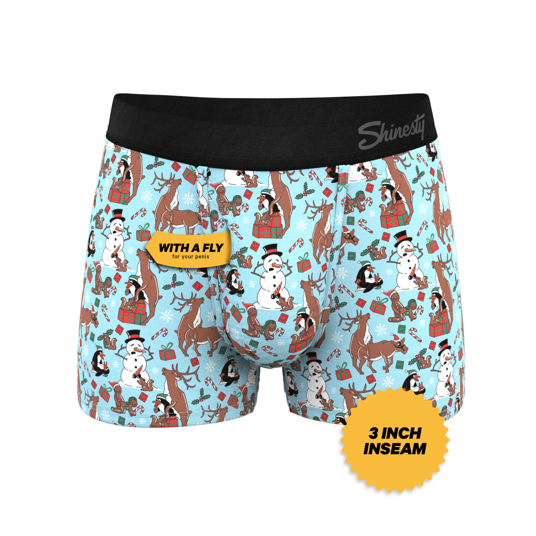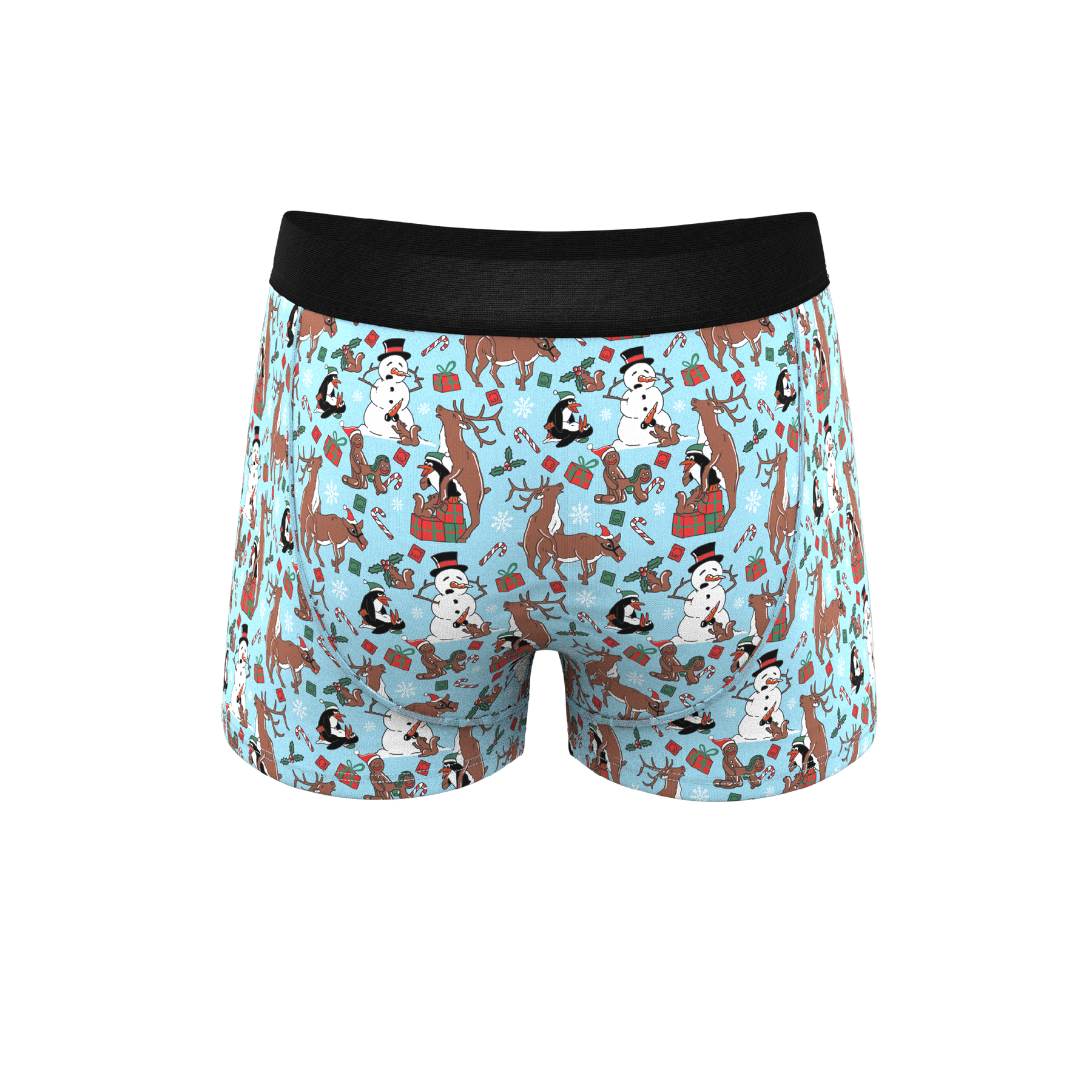 Ever wonder what happens at the North Pole while Santa’s out delivering presents? Let’s just say some boxes are definitely getting stuffed with toys. The yuletide orgy on this Ball Hammock® Pouch Trunks Underwear definitely puts the XXX in Xmas.