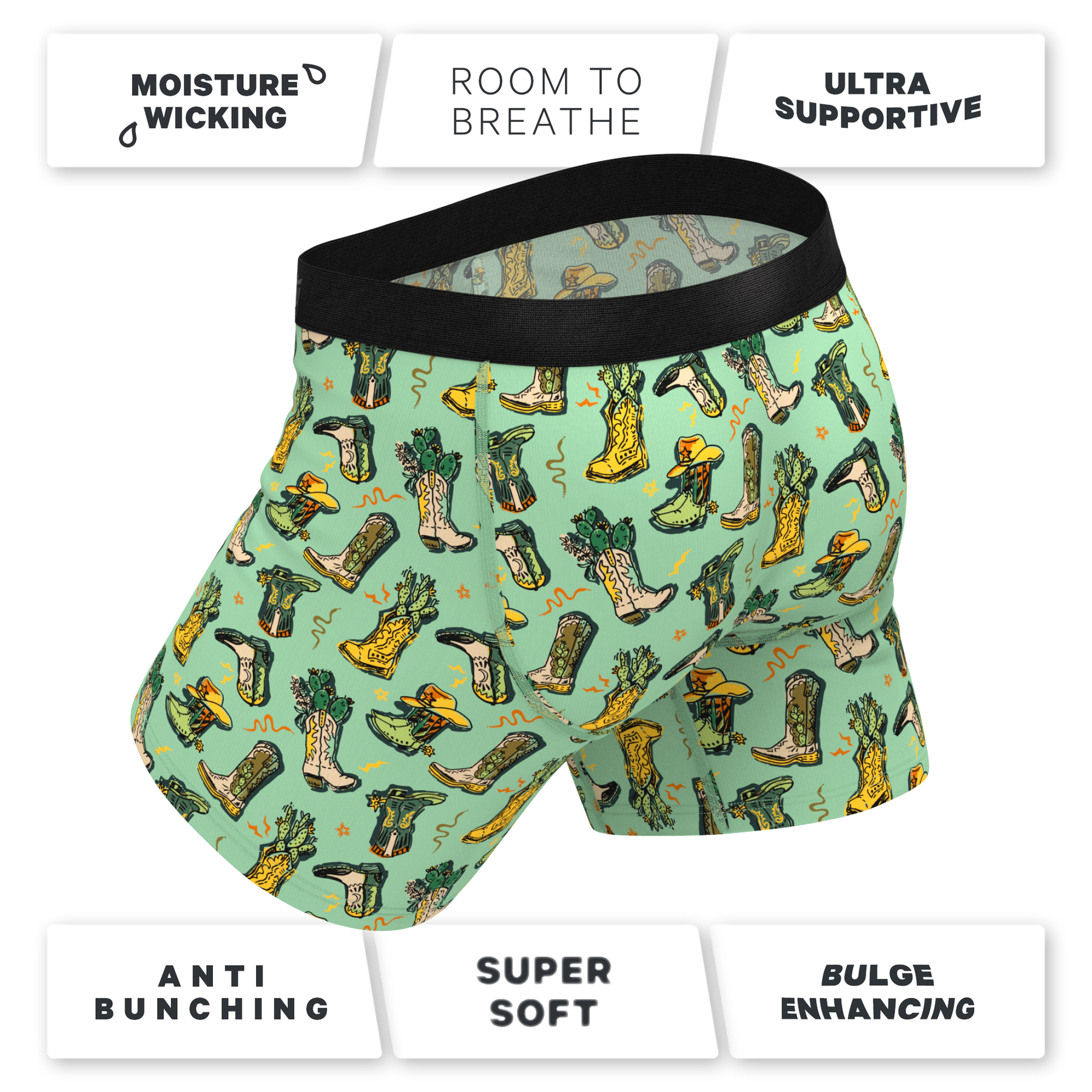 Cowboy boots are designed to make horse riding more comfortable. But sitting on them isn’t nearly as comfortable as a saddle.
