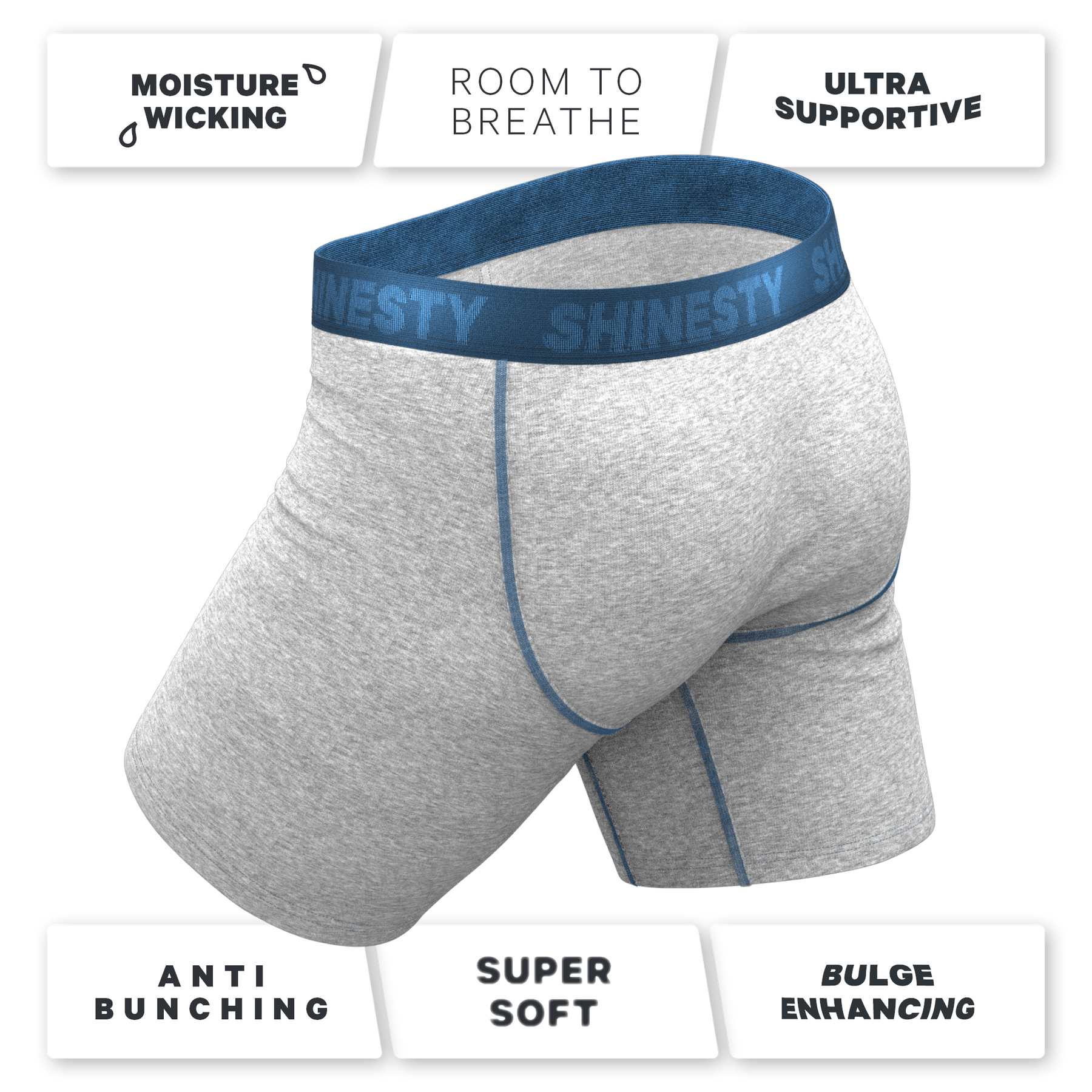 The Physical Education | Heather Grey and Blue Long Leg Ball Hammock® Pouch Underwear With Fly