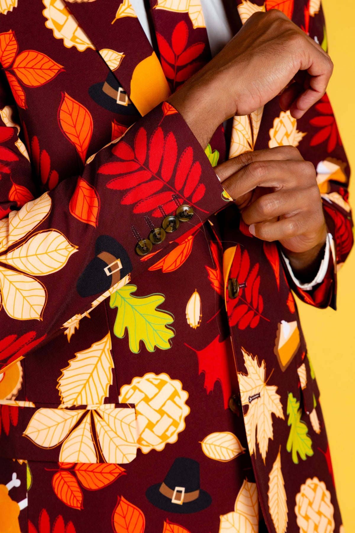 This Thanksgiving suit blazer just made turkey day sexy. If that makes you uncomfortable, just think about every other holiday. Halloween has slutty cats. Christmas has mistletoe. Thanksgiving now has this fall-themed blazer.