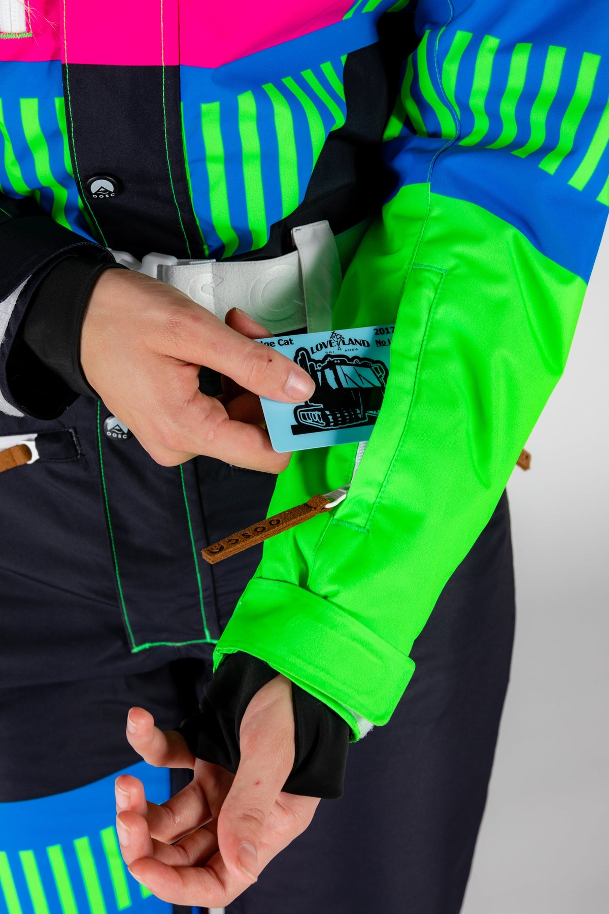 Skiing is the easy part, you know how to do that. The difficult thing is how to make yourself known in a sea of black North Face jackets and pea-brains who don't wear helmets. It's obvious that the style of this women's vintage one piece ski suit is out of this world, but you'll be pleasantly surprised to learn that the features are just as impressive. This retro black ski suit for ladies is dripping in steez and is NOTHING like that boring black jacket. Just let these deets explain how.