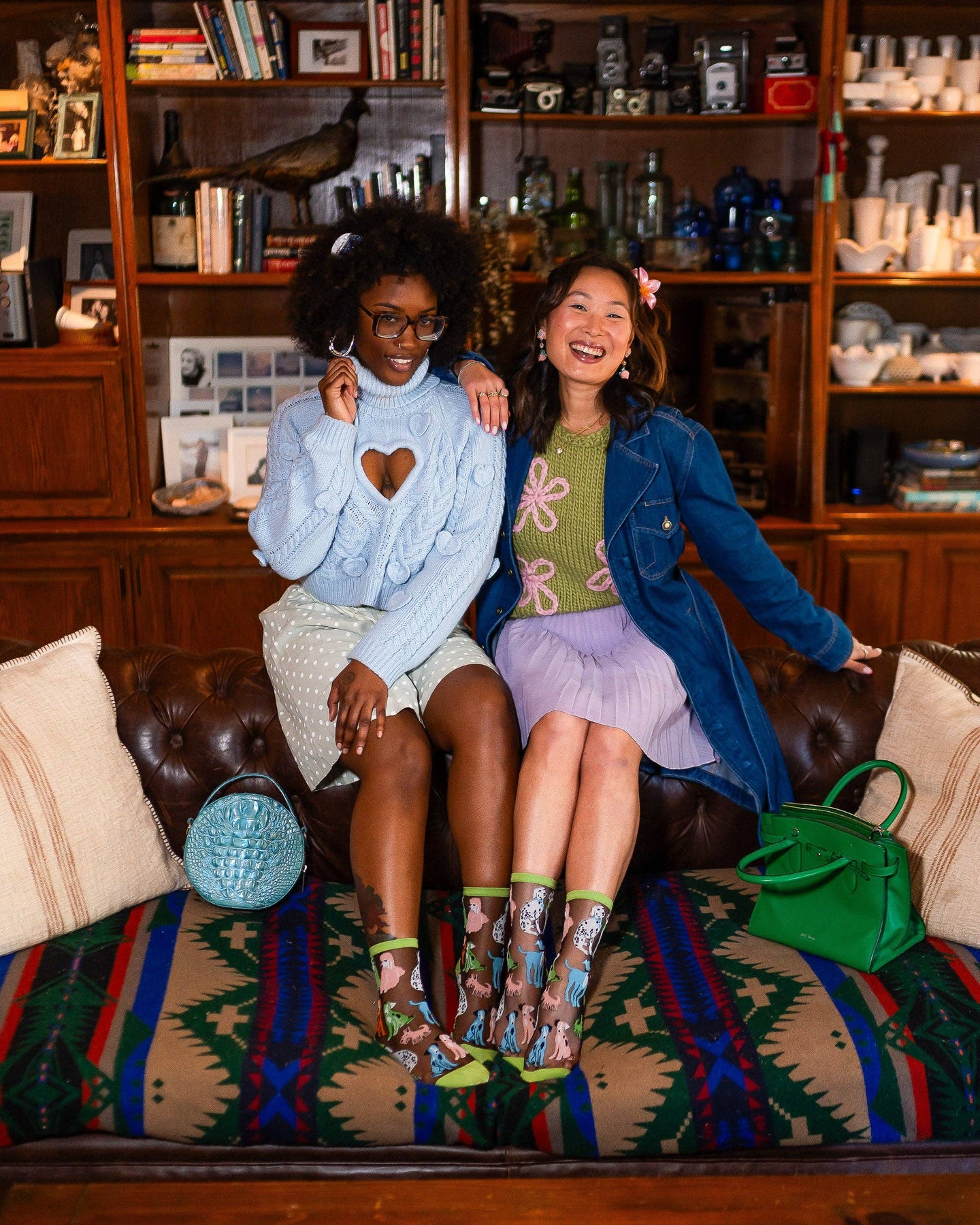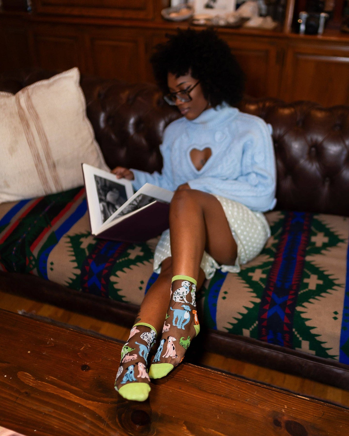 Our Dopamine Dogs black sheer sock is your go-to source for a daily dose of happiness. Bursting with personality, colorfully quirky pups in green, orange, pink, and white adorn the sock, making every step more fun. The fresh green cuff, heel, and toe add a playful Spring vibe, while the black sheer fabric keeps your look effortlessly chic. One Size. Recommended fit US women's shoe sizes 5.5-10. 200 Needle Count. ✨ Funky yet elegant - no silly or childish patterns 🧦 Premium quality - durably made with comfortable stretch 👗 Unique - the perfect accessory to add individuality to your outfits
