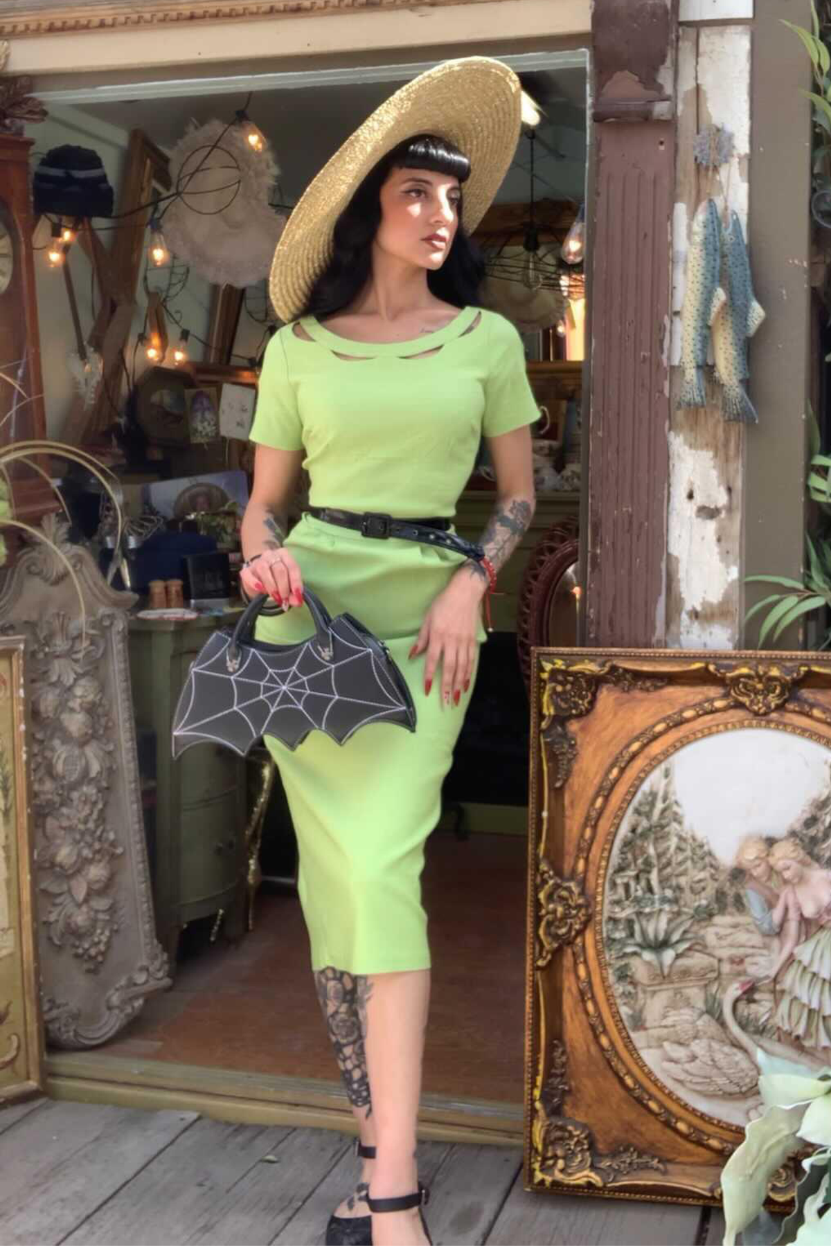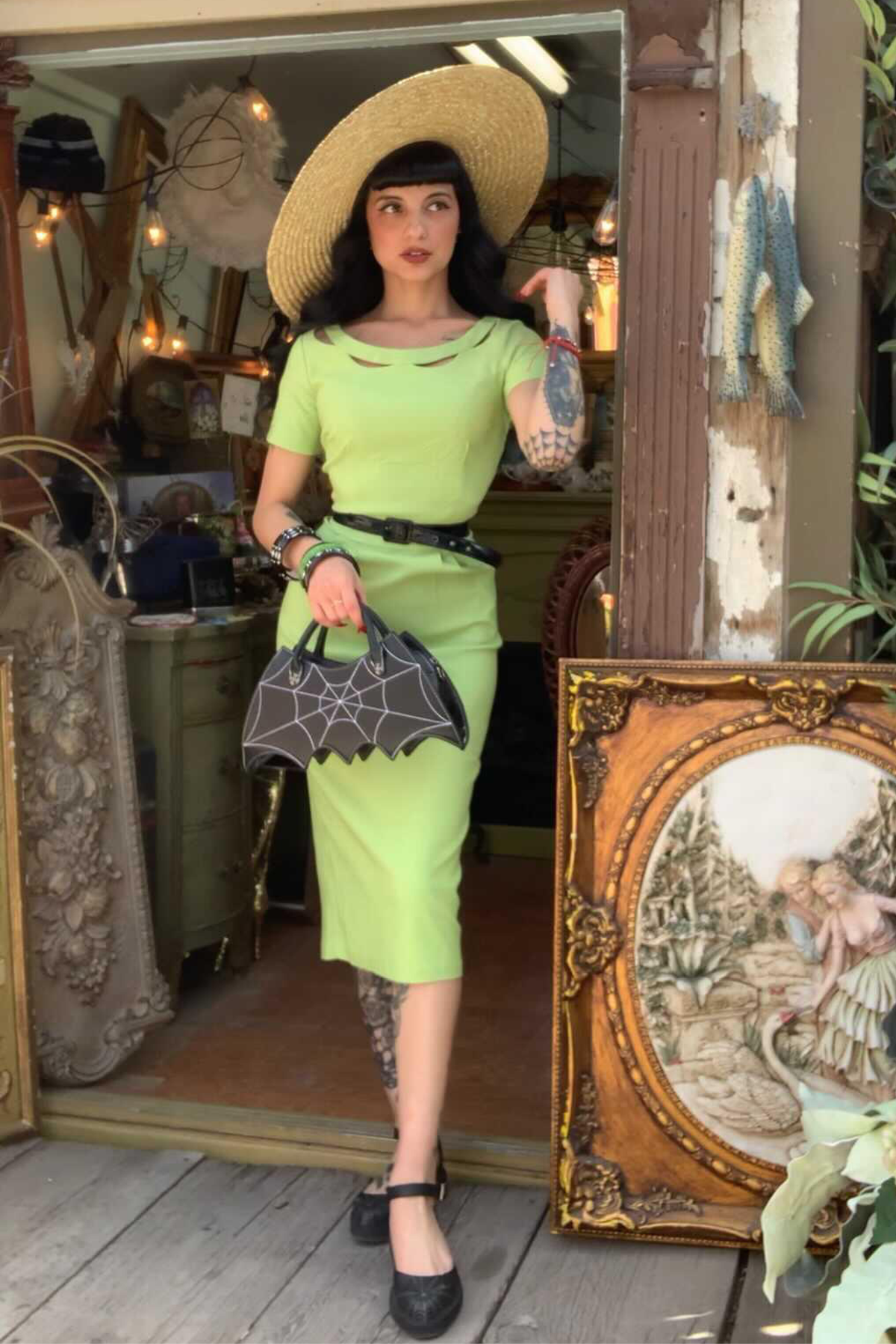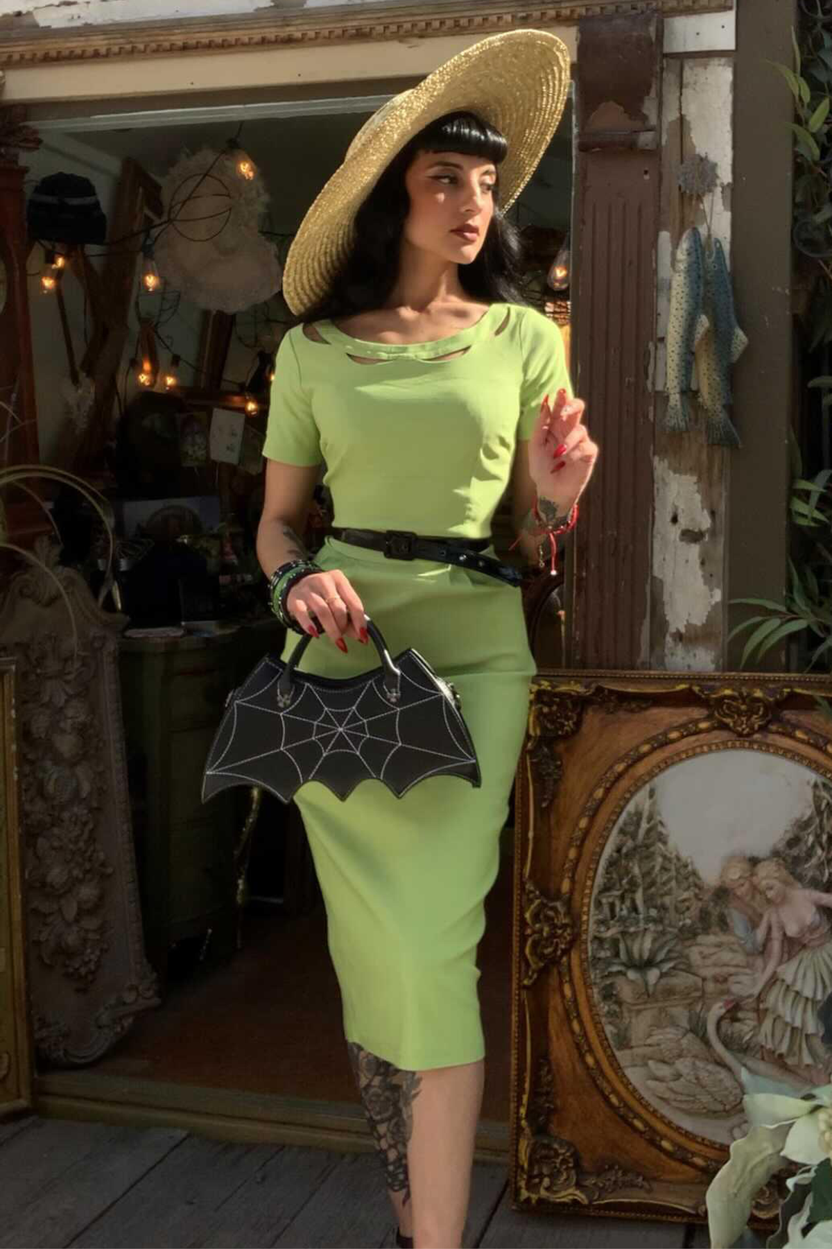 Connie in Titanite is the everything dress! Slip into this pencil dress in bright springtime green and feel like you slipped back in time.