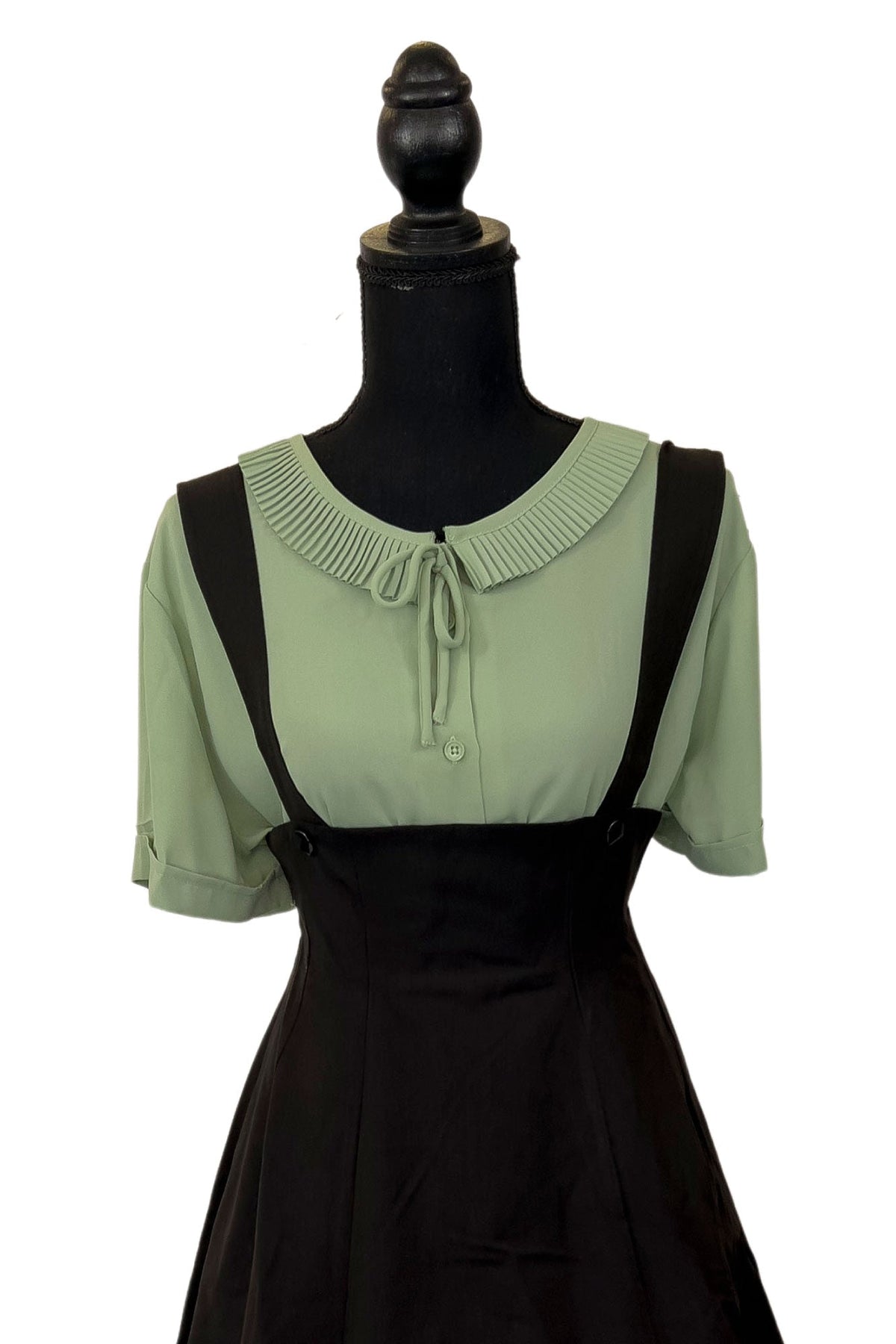 - Pleated collar with bow detail