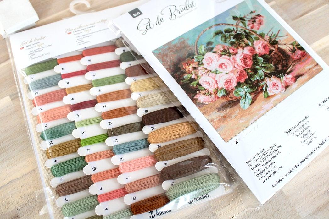 Soft basket of roses üåπ will not leave you indifferent. This project will create beautiful needlework art with Luca-s kit. Kit includes blank Zweigart fabric, threads sorted on bobbins. This kit is not stamped.