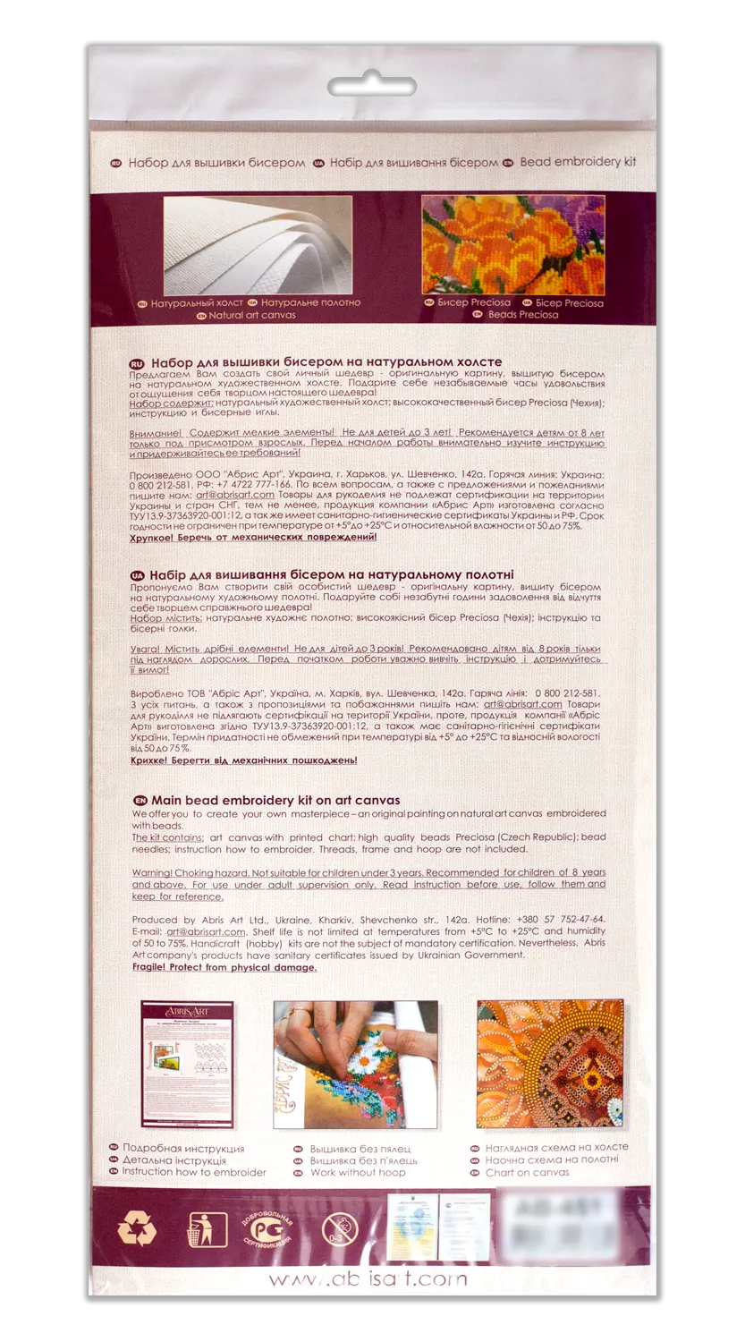 In each carefully assembled box Main Bead Embroidery Kit Ginkgo biloba (Deco Scenes) after purchase and delivery you will find: a large piece of natural art canvas with a printed image-scheme (fabric for embroidery) larger than the size of the picture - 310 x 320 mm. - with enough stock to make it convenient to embroider and design the finished picture! The world's best beads Preciosa Ornela (Czech Republic), with "stock" - more than 7377 beads, high-quality bead needles from Japan , and most importantly - detailed instructions, the scheme for beadwork with a key, specially developed by our designers for each plot separately and already applied to the canvas! The kit is additionally completed with beads Preciosa No. 13 - microbeads - 4 colors, a needle for embroidery with microbeads.