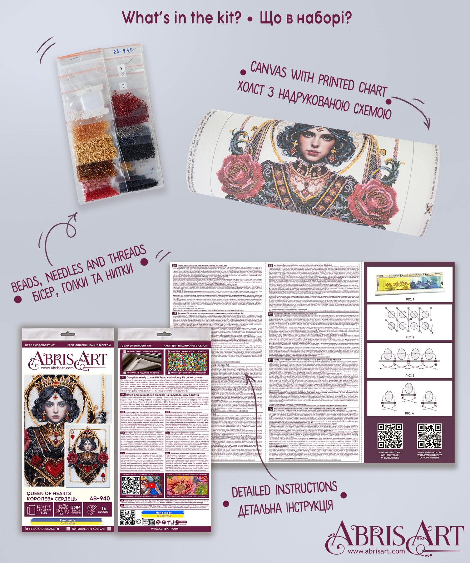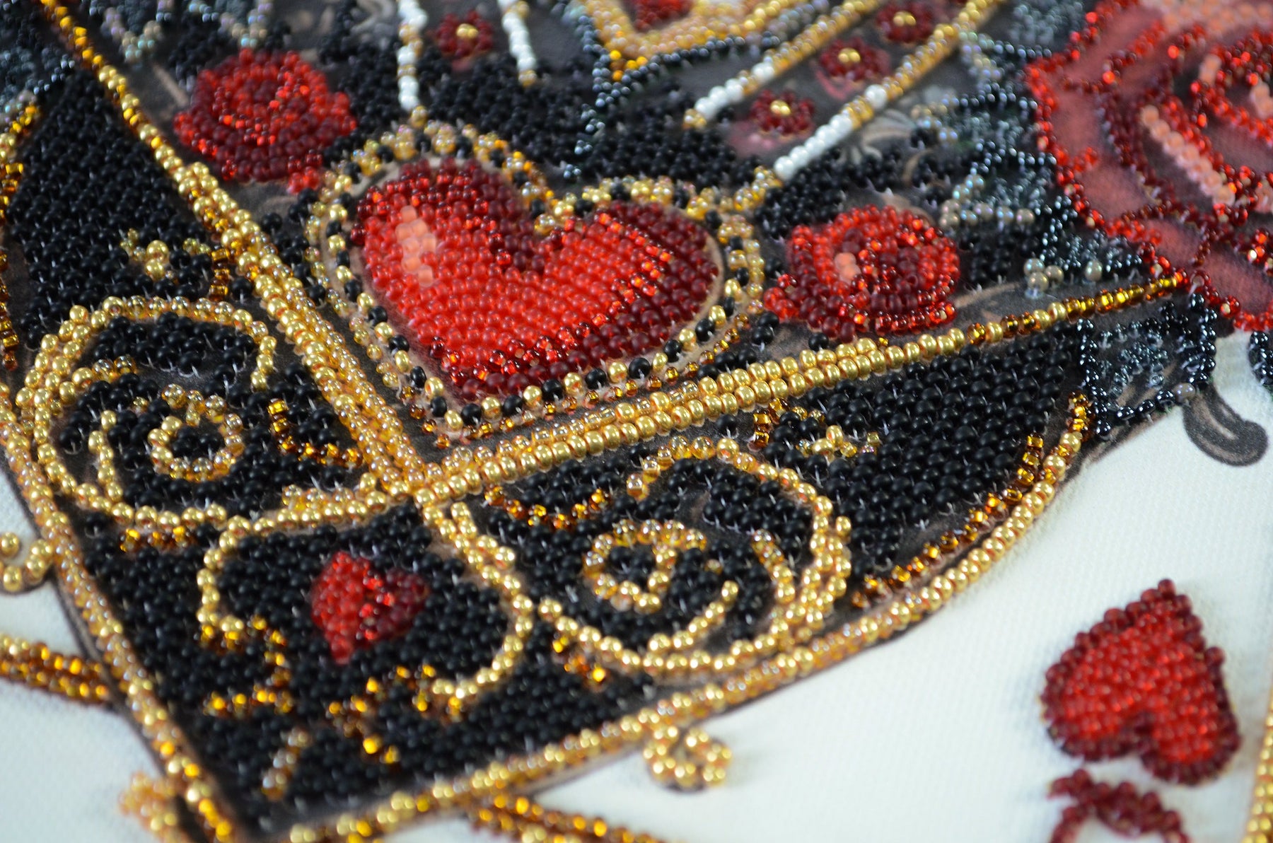 In each carefully assembled box Main Bead Embroidery Kit Queen of hearts (Deco Scenes) after purchase and delivery you will find: a large piece of natural art canvas with a printed image-scheme (fabric for embroidery) larger than the size of the picture - 290 x 210 mm. - with enough stock to make it convenient to embroider and design the finished picture! The world's best beads Preciosa Ornela (Czech Republic), with "stock" - more than 5584 beads, high-quality bead needles from Japan , and most importantly - detailed instructions, the scheme for beadwork with a key, specially developed by our designers for each plot separately and already applied to the canvas!