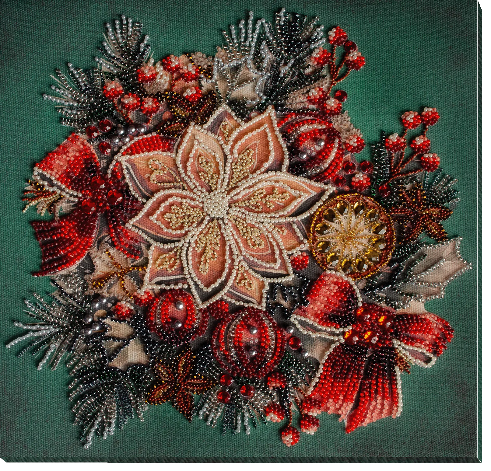 In each carefully assembled box Main Bead Embroidery Kit The taste of Christmas (Winter tale) after purchase and delivery you will find: a large piece of natural art canvas with a printed image-scheme (fabric for embroidery) larger than the size of the picture - 240 x 250 mm. - with enough stock to make it convenient to embroider and design the finished picture! The world's best beads Preciosa Ornela (Czech Republic), with "stock" - more than 5729 beads, high-quality bead needles from Japan , and most importantly - detailed instructions, the scheme for beadwork with a key, specially developed by our designers for each plot separately and already applied to the canvas!