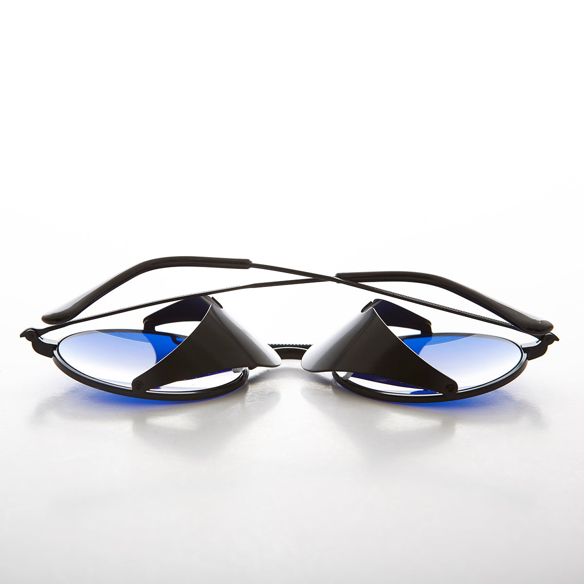 Blue Lens Steampunk Sunglass with Folding Side Shields - Bram 1