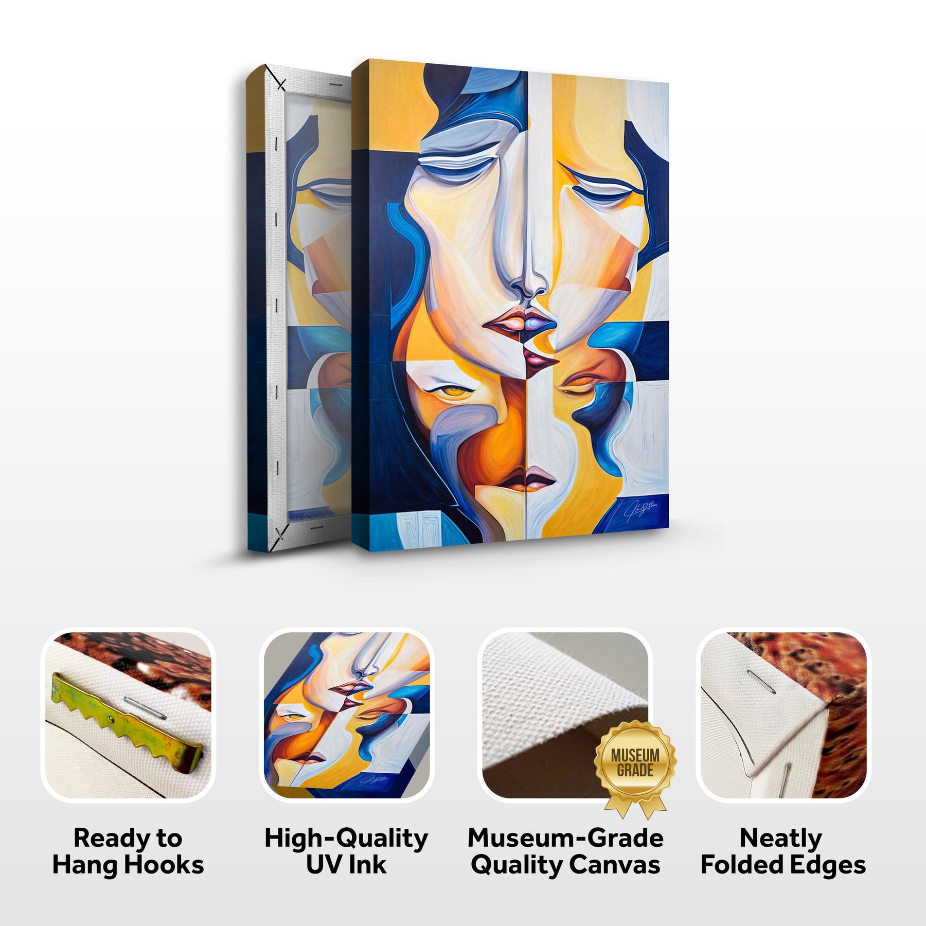 "Talk" is a captivating canvas from one of his famous collections that intertwines abstract faces in vibrant hues, representing dialogue and connection. This piece brings a dynamic energy and thought-provoking presence to any room, making it an ideal addition for those who appreciate modern, expressive art.