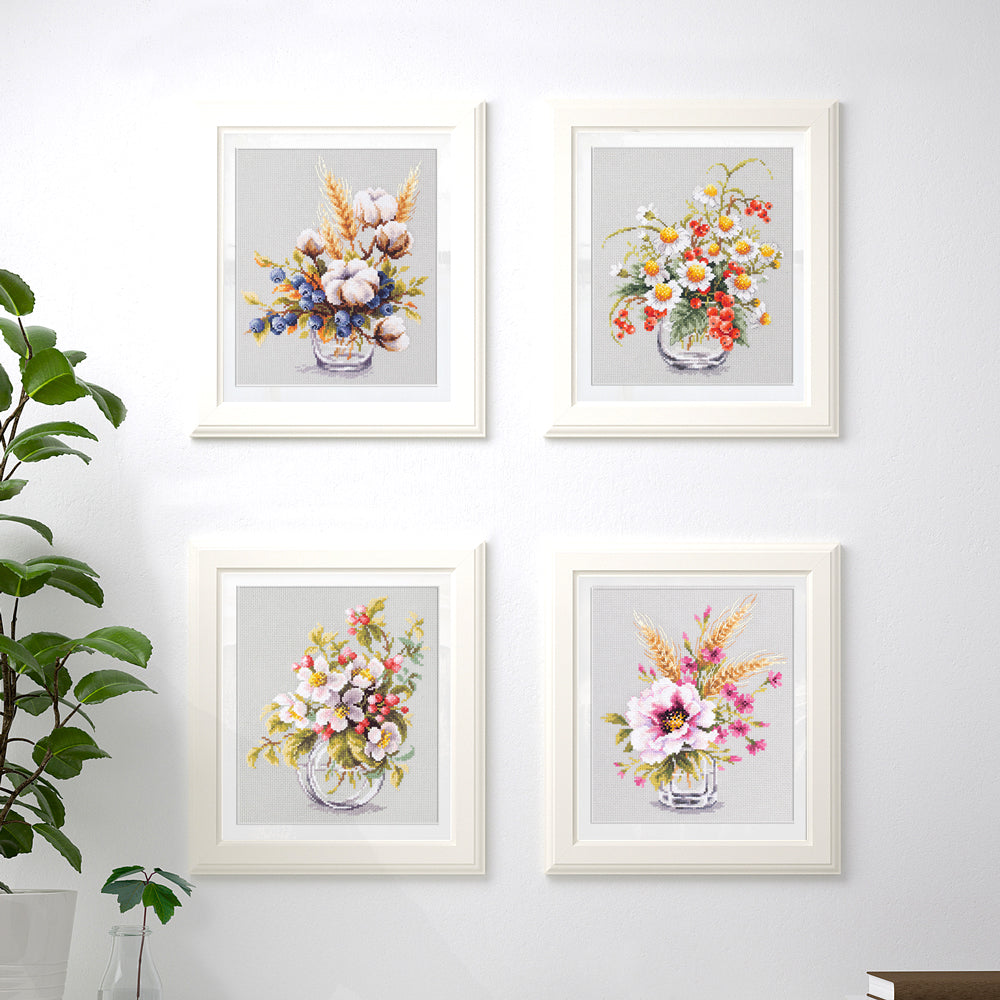 Kit contains: Fabric Zweigart Aida 14 (light gray), Threads: GAMMA (100% cotton), Number of Colors:25. Embroidery instructions in English, German, French and Spanish; color symbol scheme. Dimensions: 18*23cm / 7,09*9,06inches