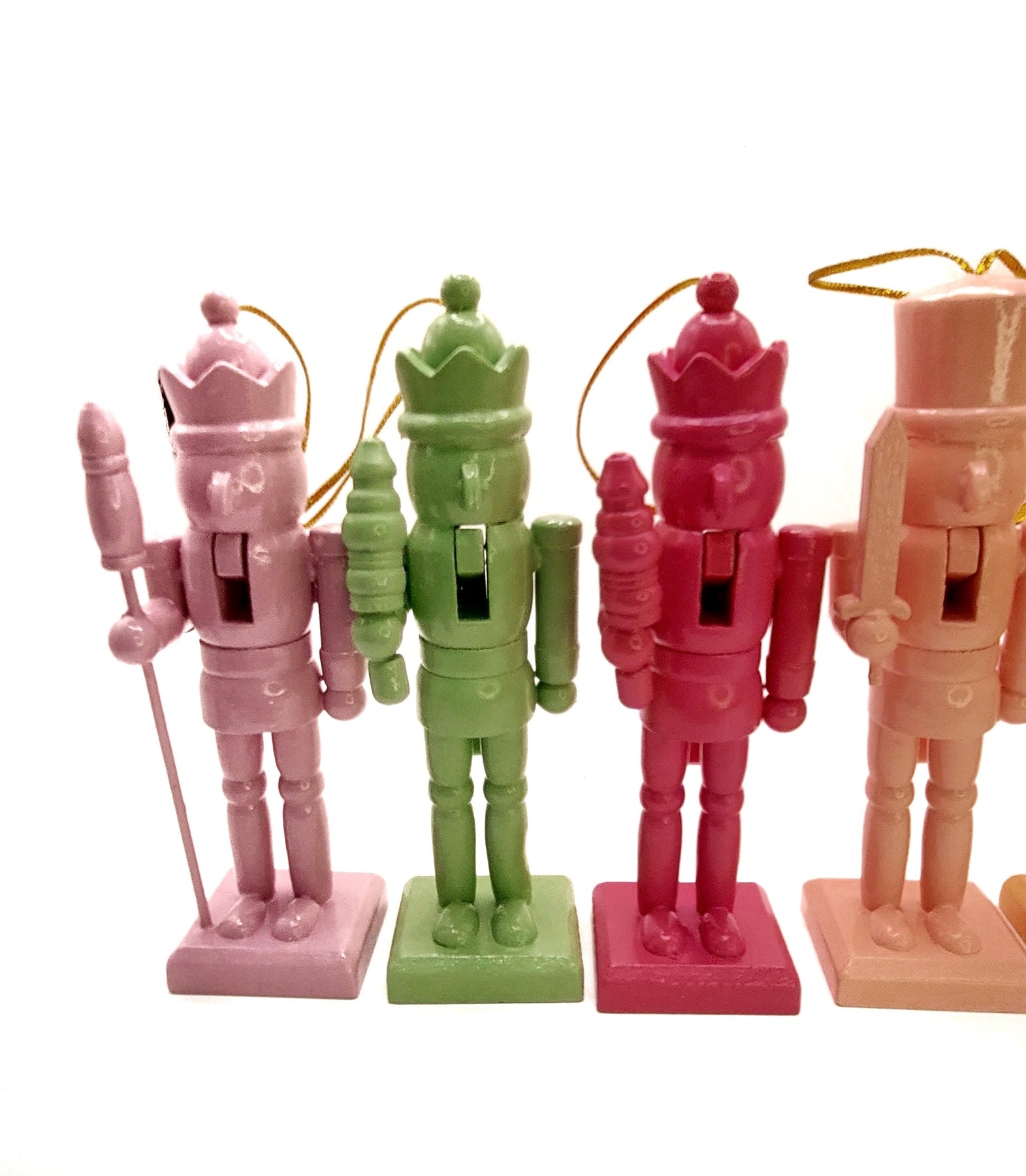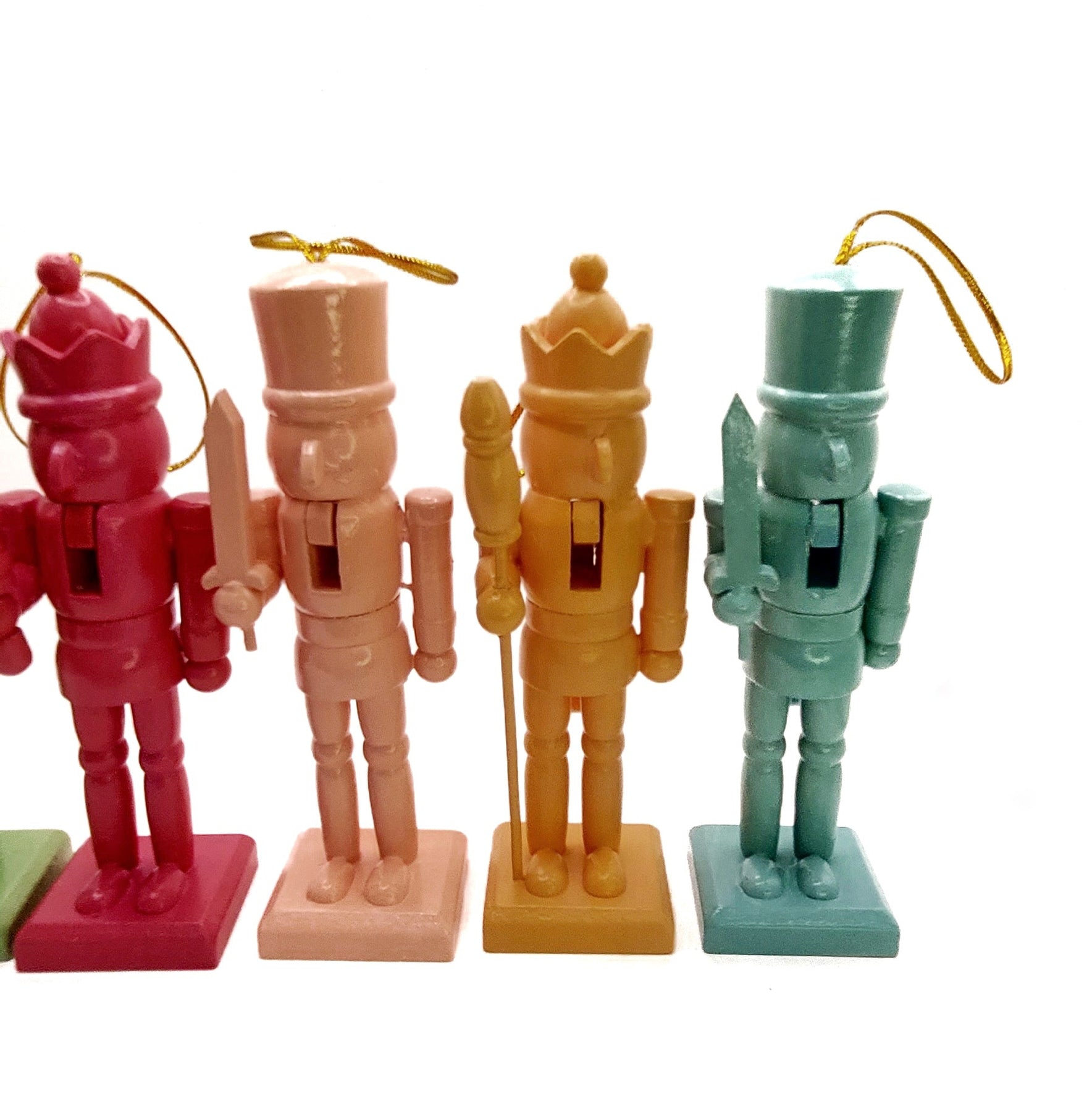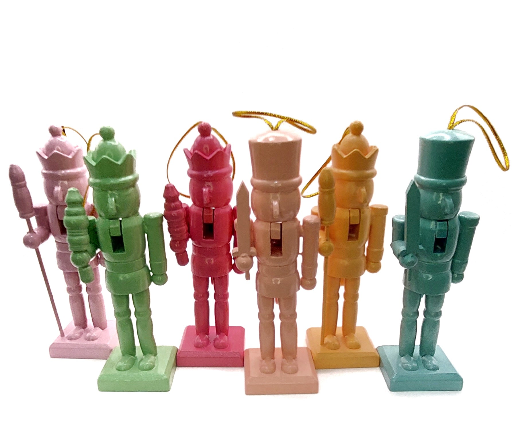 Bring holiday cheer to your home with this charming set of Nutcracker figurines. These Nutcrackers are perfect for adding a festive touch to your decor, whether displayed individually or as a collection. Their vibrant colors and timeless designs make them an eye-catching addition to any room, enhancing your holiday atmosphere.