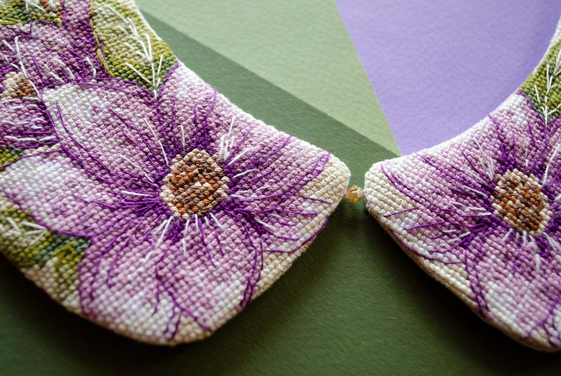 The set is completed with canvas 210*230mm white, count 18 - 2 pcs., threads 72m, a decorative glass stone and additionally a fabric for sewing the lining of beige color 210*460cm, a decorative ribbon of beige color (velvet) - 60cm. The "Ethno-motive" decoration set is a wonderful set for creating a collar embroidered in the technique of a counted cross. This is a special decoration that will be a great addition to your image. It is impossible to buy such a thing ready-made. We create a masterpiece together with Abrys Art.
