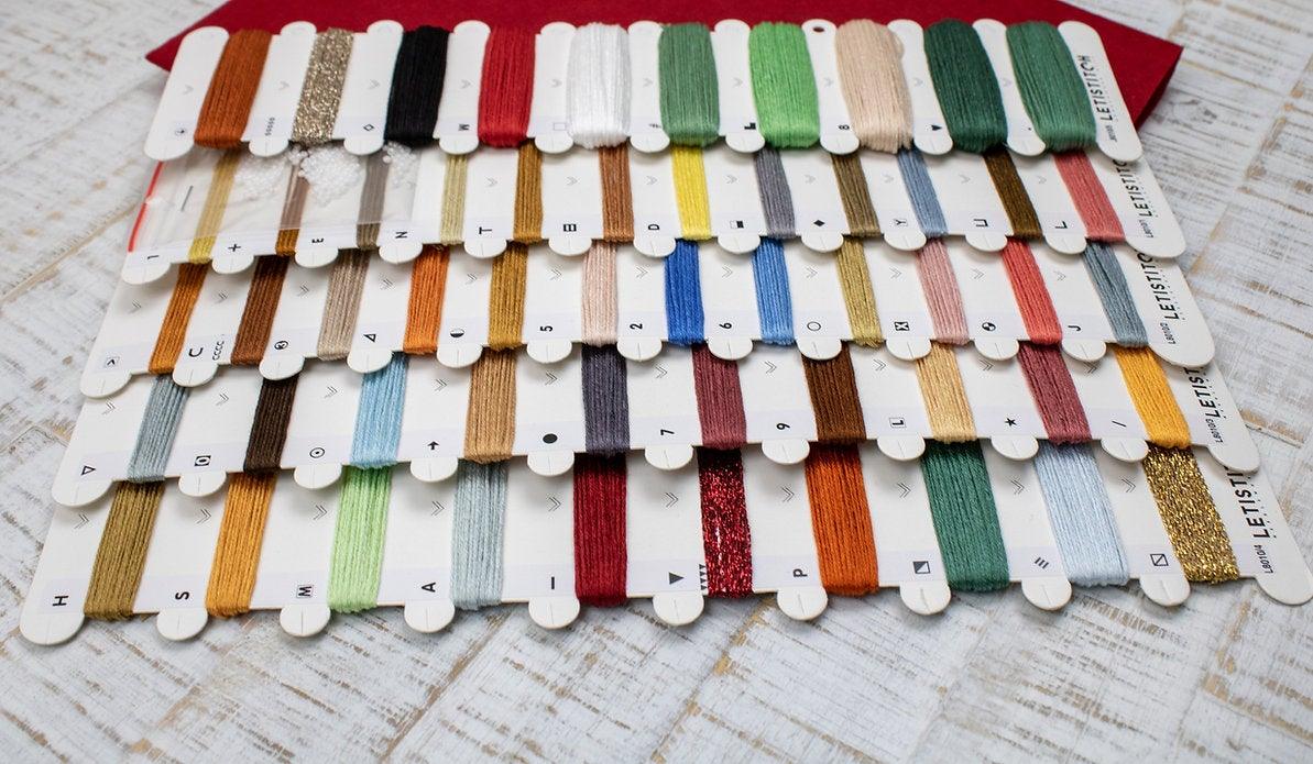 Applied embroidery kit makes Christmas stocking kit for your celebration. This project includes backside for the stocking, canvas for the stocking and threads for cross stitch. Threads are presorted on bobbins. This kit will be perfect for gifts and make your family happy.