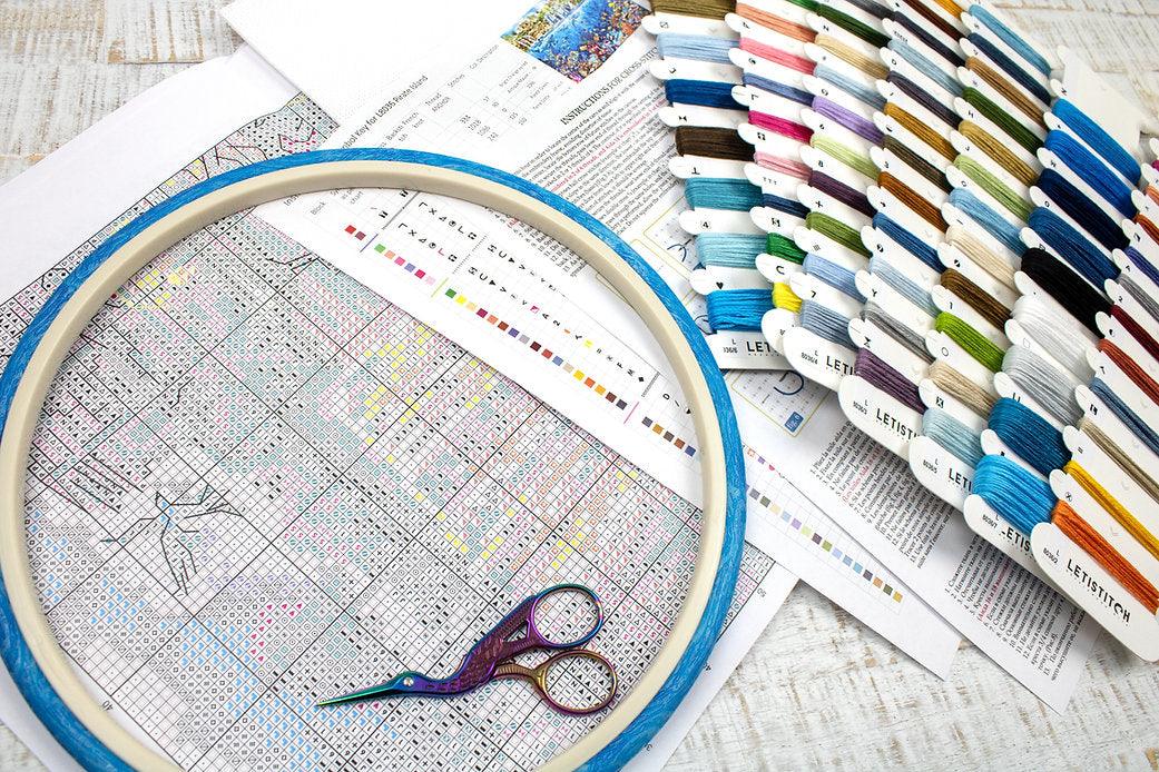 Kit contains: canvas(Zw. Aida 16/100), Anchor(79 colours), needle and instruction. Dimensions 48*32 cm / 18,9*12,6 in.