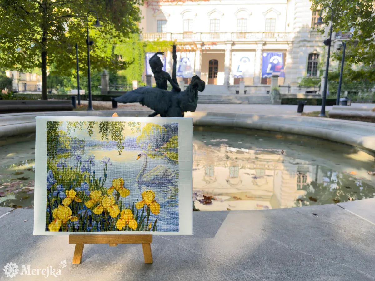 Kit contains: Canvas Zweigart Aida 16, ice-blue, DMC threads 41 colors, John James needles. The schema has colour symbols. There are two versions of schema with and without backstitches in each kit. 28x34 cm / 11,02x13,39 inches