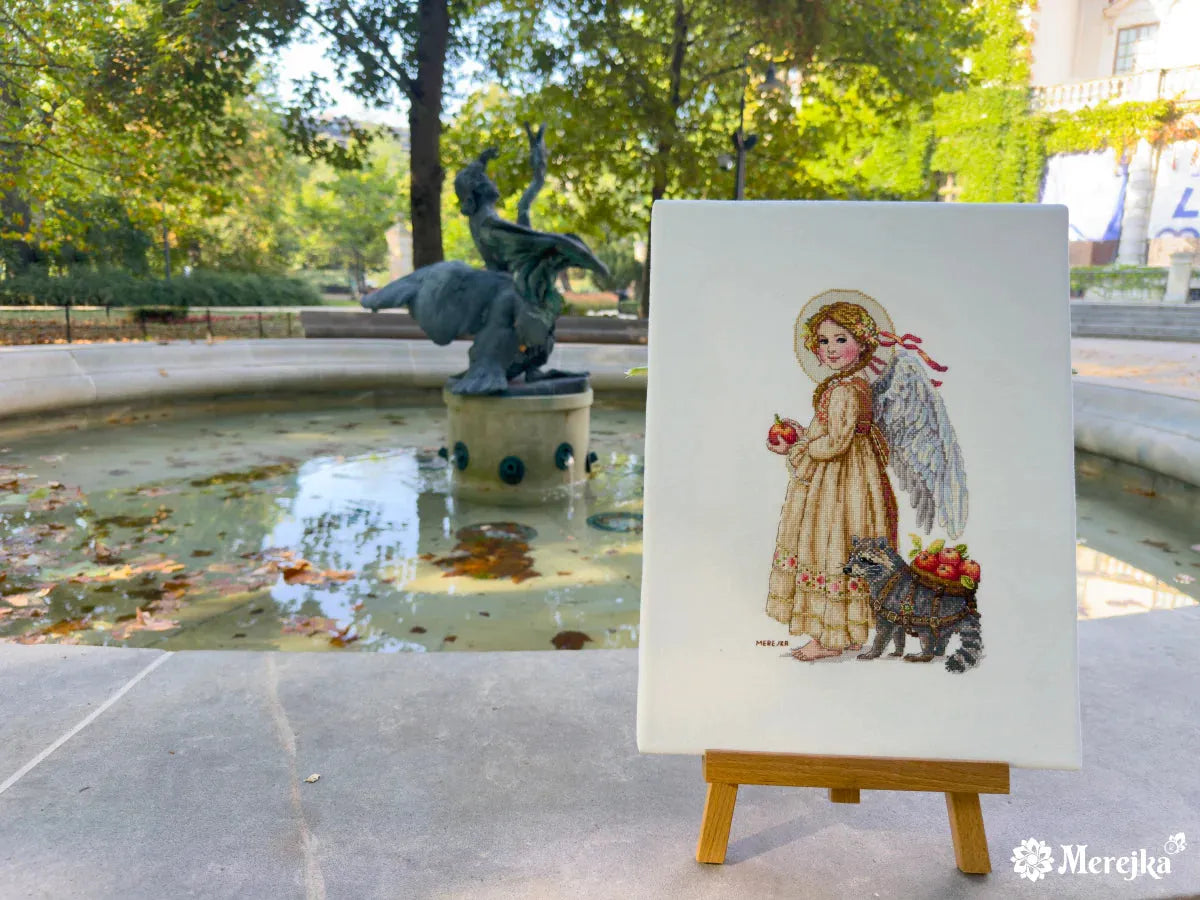 Kit contains: Canvas Zweigart Aida 16, white, DMC threads 36 colors, John James needles. The schema has colour symbols. There are two versions of schema with and without backstitches in each kit. 17x27 cm / 6,69x10,63 inches