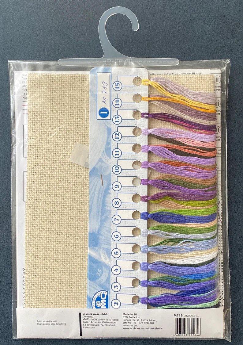 Kit contains: Canvas Aida 14, 100% cotton, colour:grey beige, fabric Zweigart, chart, needle, instruction. Mouline DMC (45 colours). Dimensions 21.5*25.5 cm / 8.46*10.04 inches