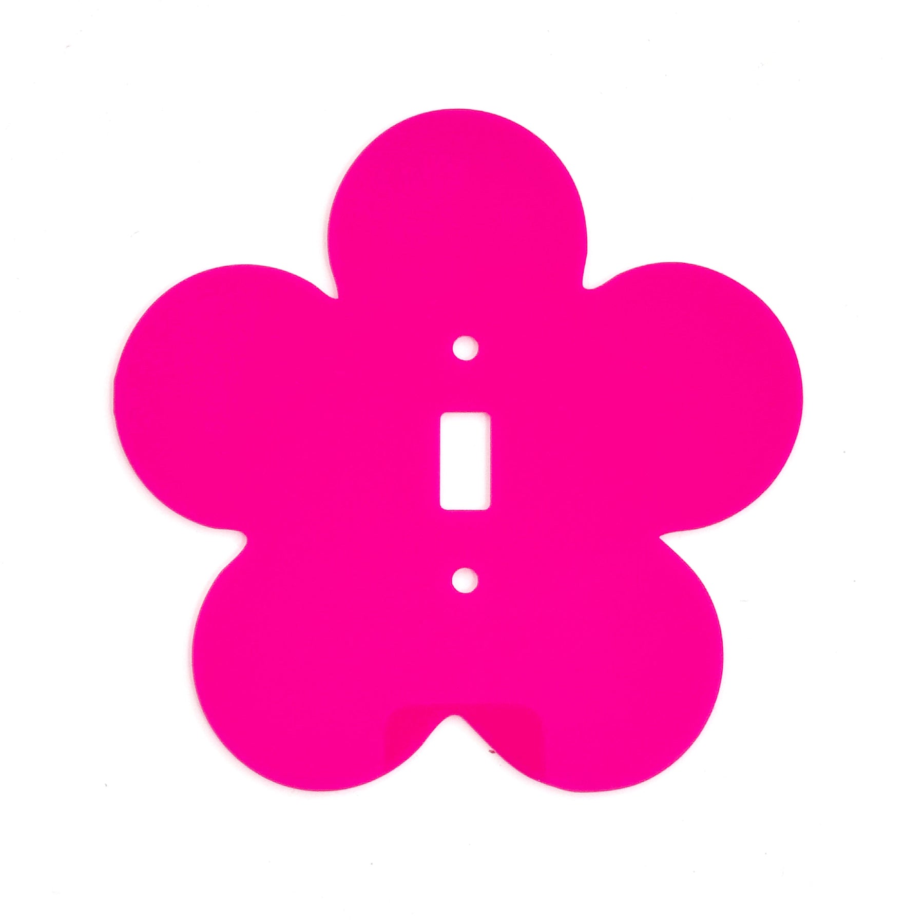 A cute acrylic daisy to make switching on the lights so much more colorful. measures appx 8.5” by 8.5” wide. Choose from standard flip switch (seen in photo) or rocker switch. Does not come with screws for mounting but should fit standard US sockets.
