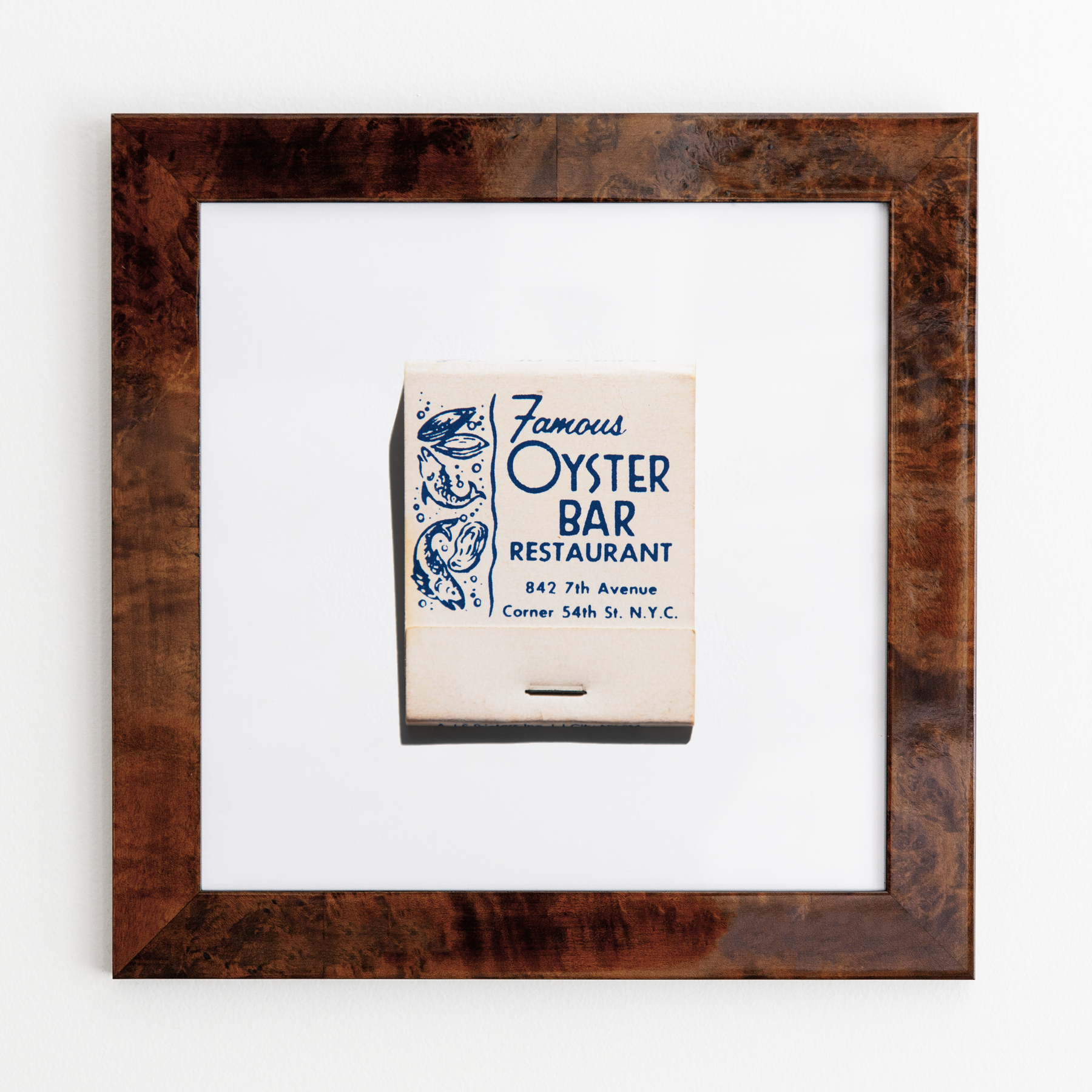 The Famous Oyster Bar print showcases an iconic matchbook design.