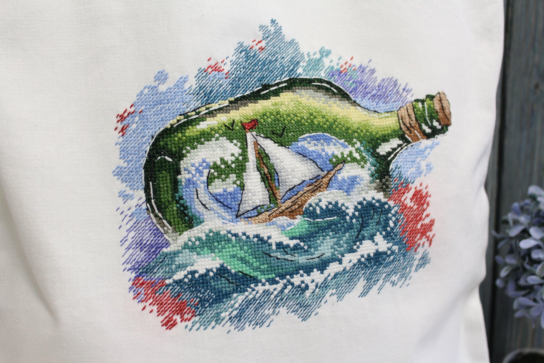 MP Studia counted cross-stitch set. This kit is stitched 14 count water soluble AIDA canvas. Cotton threads. It is new, unopened kit.