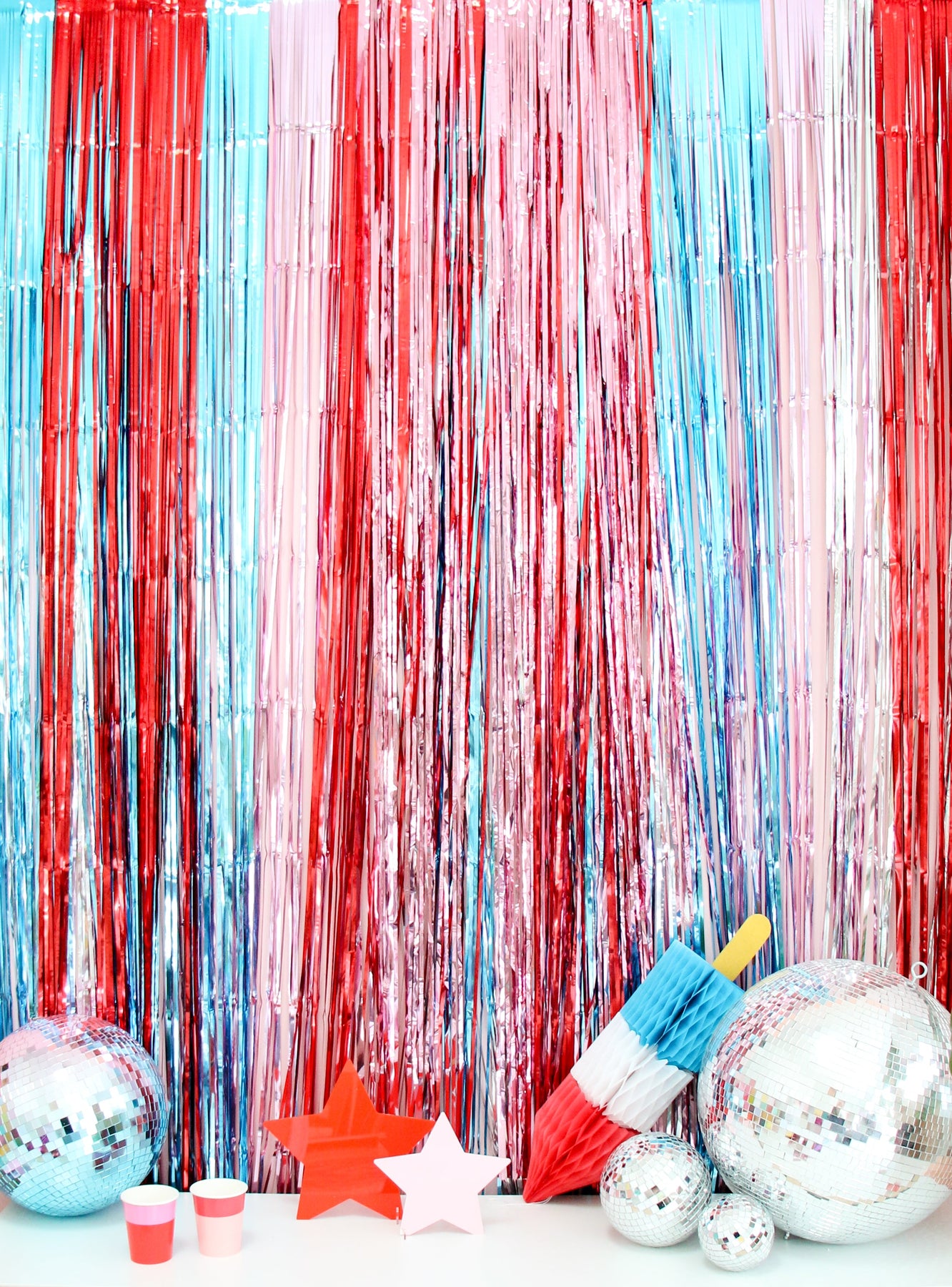 Red, White, and Blue Mylar Streamer Curtain backdrop