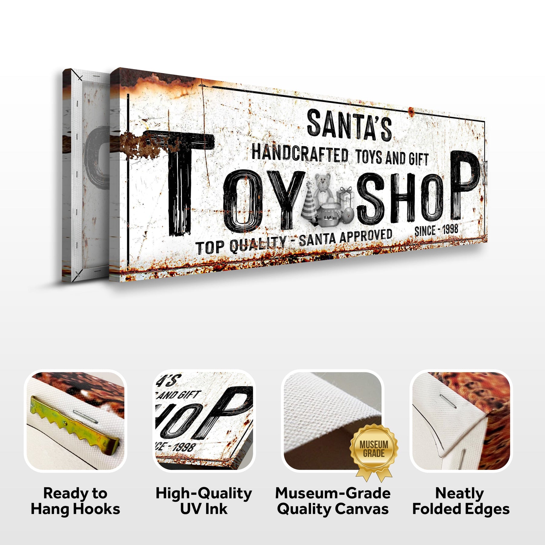 Browse our Santa's Toy Shop canvas wall art and create something unique to bring the holiday spirit into your business.