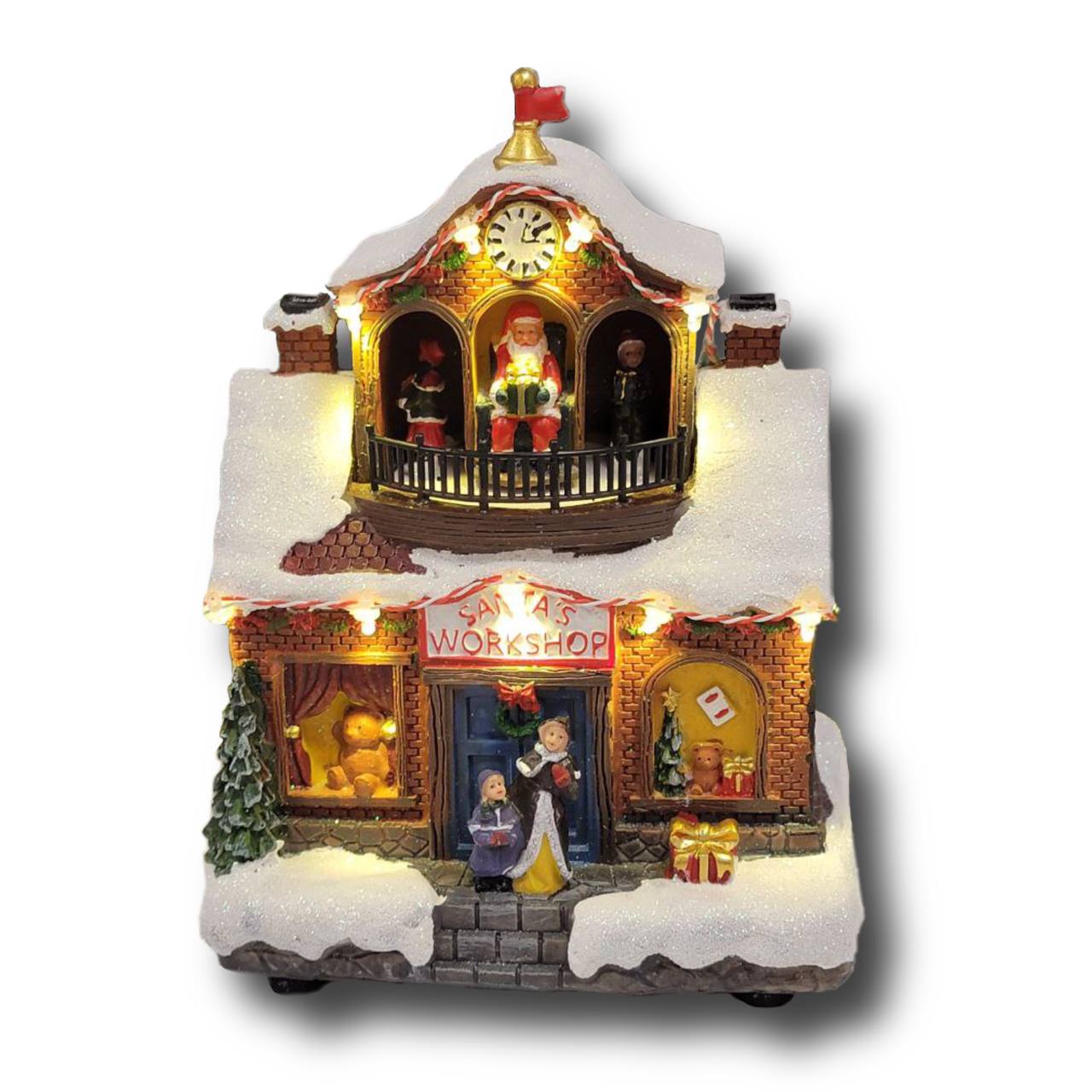 Transport yourself to a winter wonderland with this delightful holiday Santa's workshop, complete with festive characters and charming architecture. Perfect for setting a cozy, nostalgic tone, this piece brings the spirit of Christmas to life. Ideal for collectors, it’s a beautiful addition to any seasonal display.