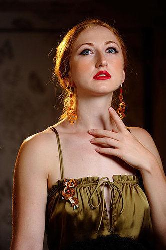 Elegant snake earrings, made in methacrylate, with acrylic bead.