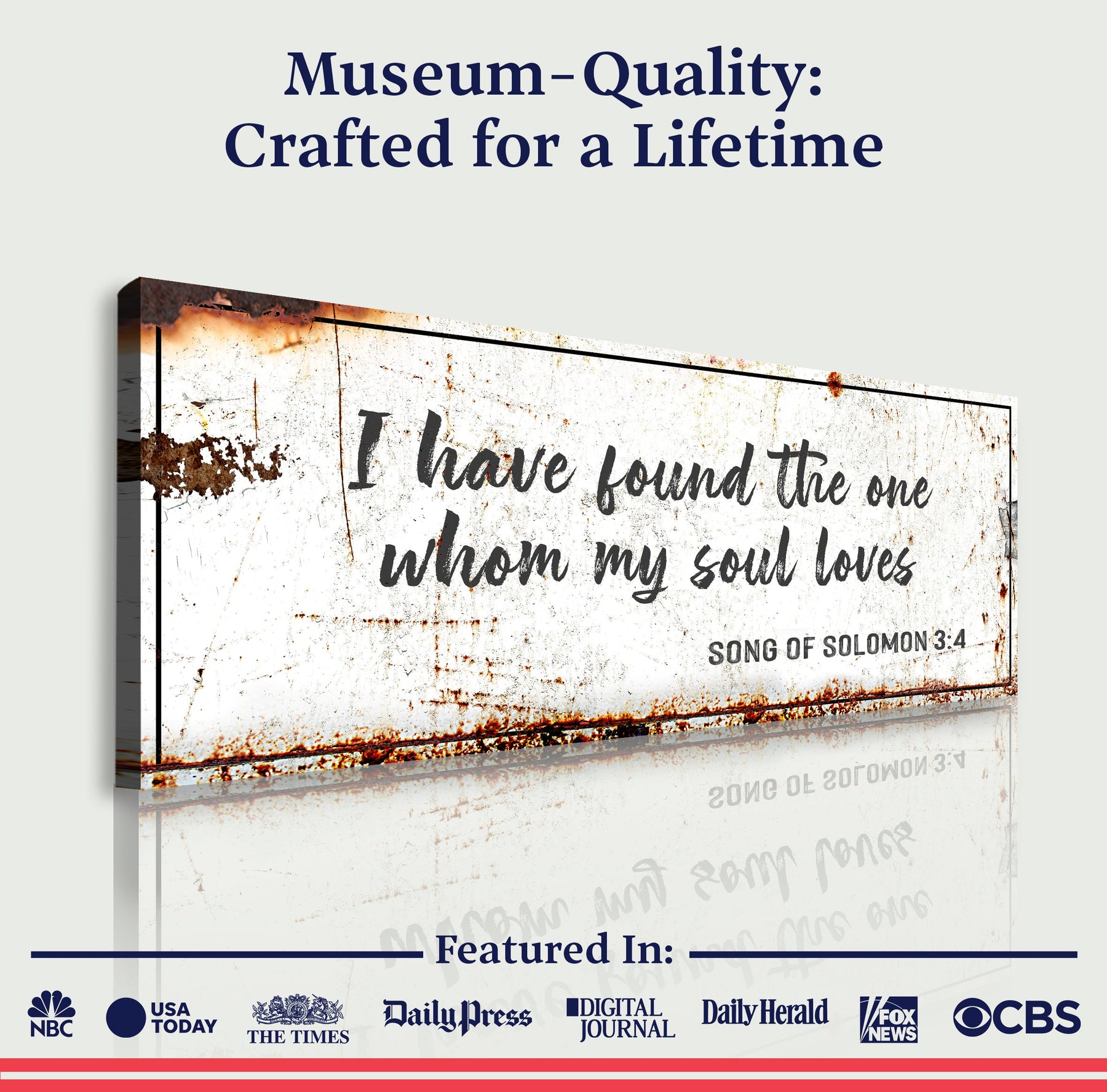 The Song of Solomon 3:4 - I Have Found The One Rustic wall art is carefully handcrafted from premium materials and will improve the elegance of your home. The Song of Solomon 3:4 - I Have Found The One Rustic canvas wall art is ideal for adding coziness to your living room and accentuating your home's interior design. Spread the word, and get our Song of Solomon 3:4 - I Have Found The One Rustic sign right away!