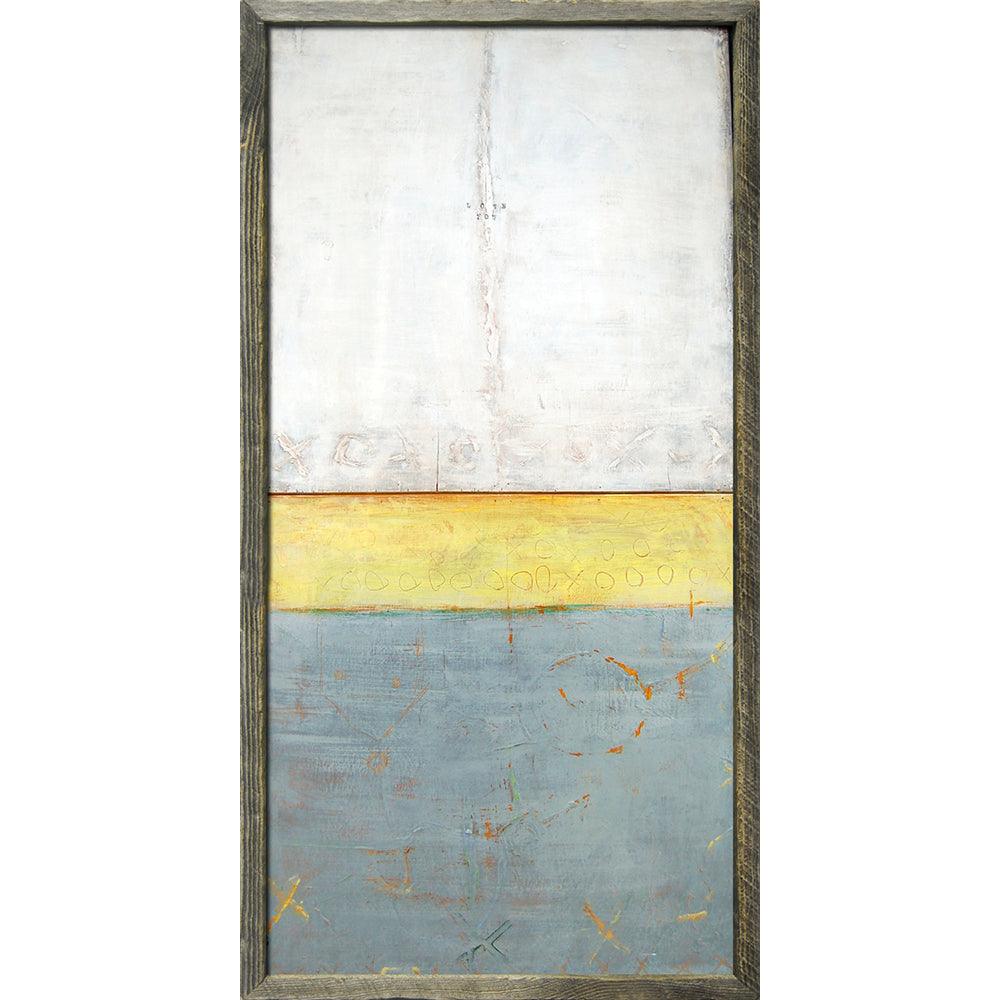 This eclectic art print features dark-blue, yellow, and light-blue sections with the phrase "Love You" printed in small letters near the top. A wonderful gift to share with the one you love.