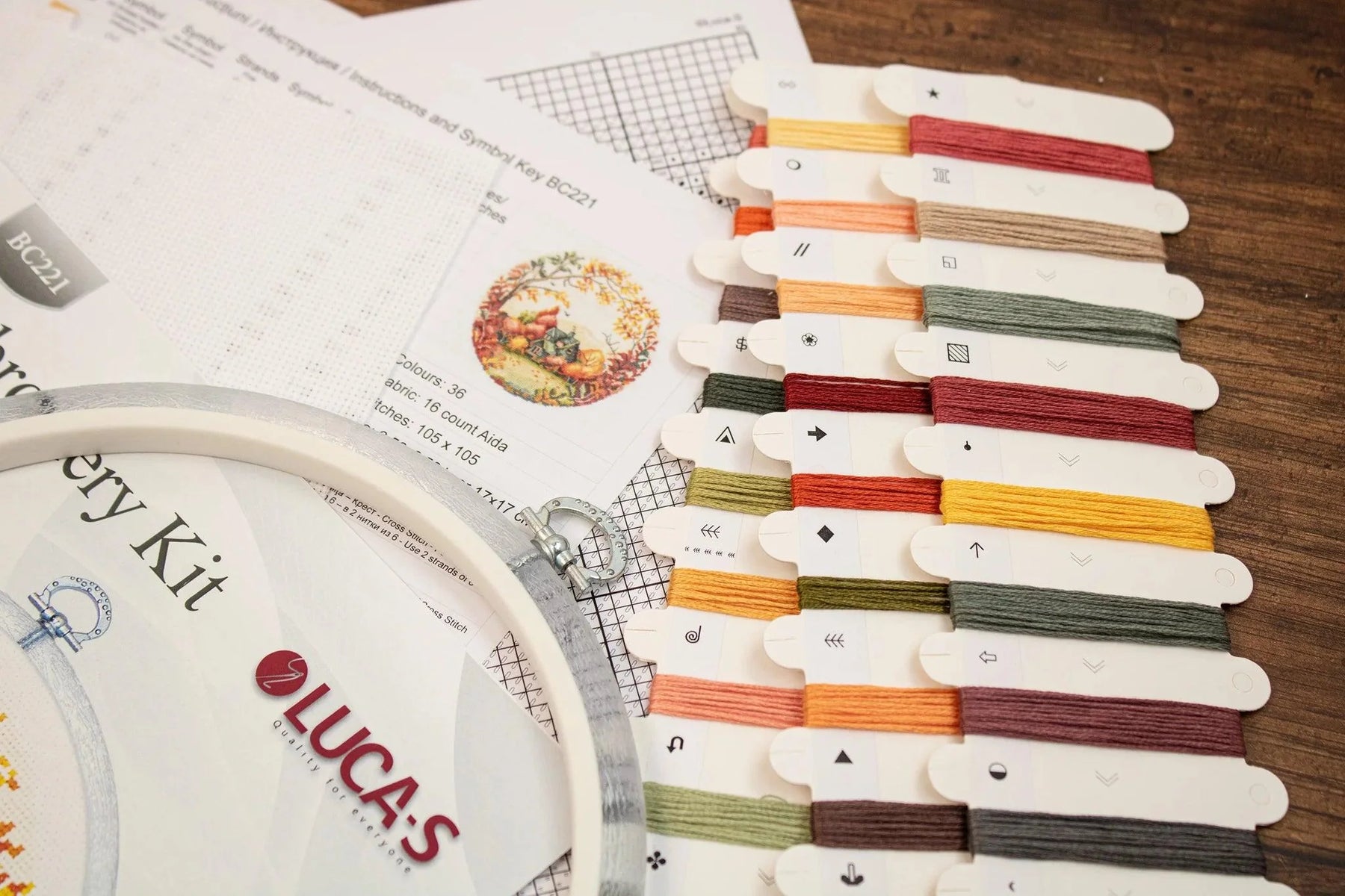 Kit contains:canvas (Aida 16/100 Zweigart), treads Luca-S(36 colours), needle and instruction. Dimensions 17*17cm / 6,69*6,69in.