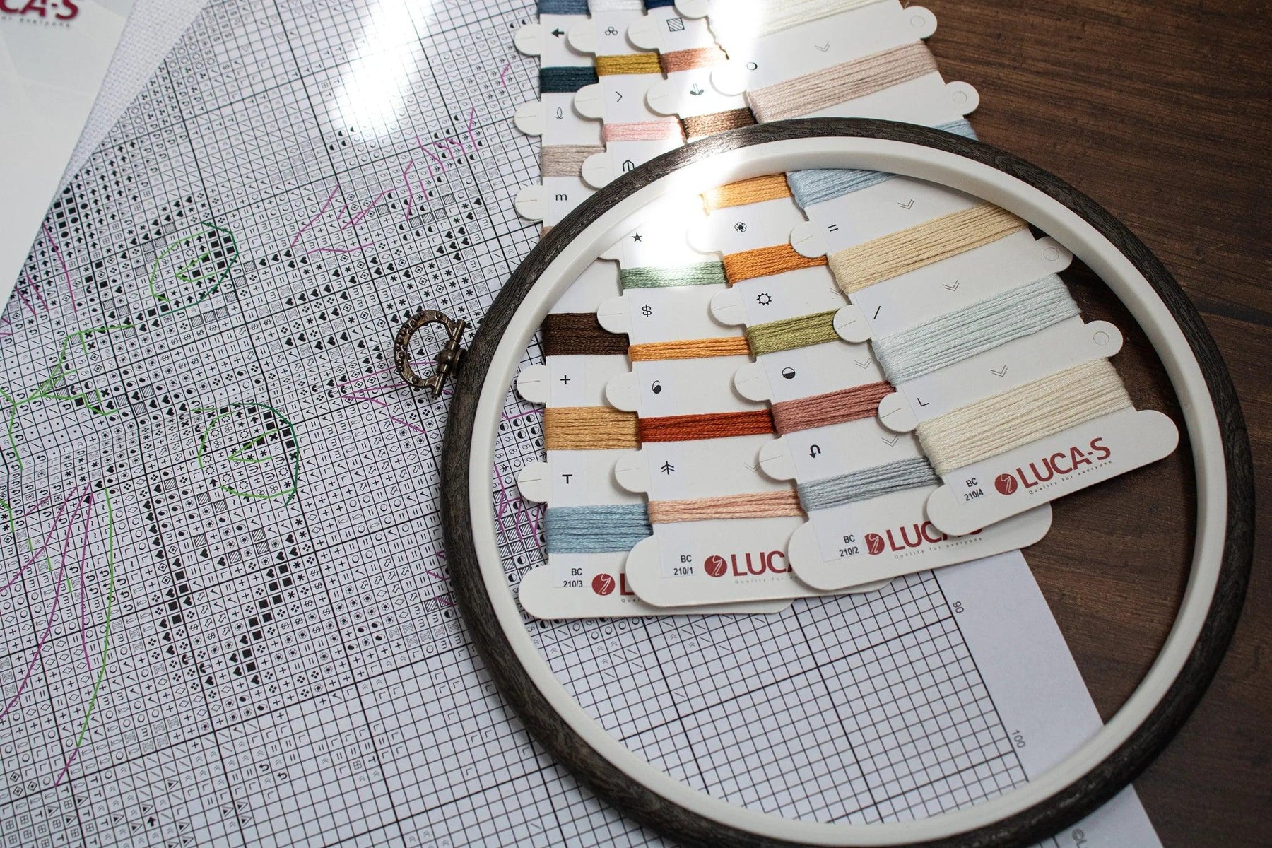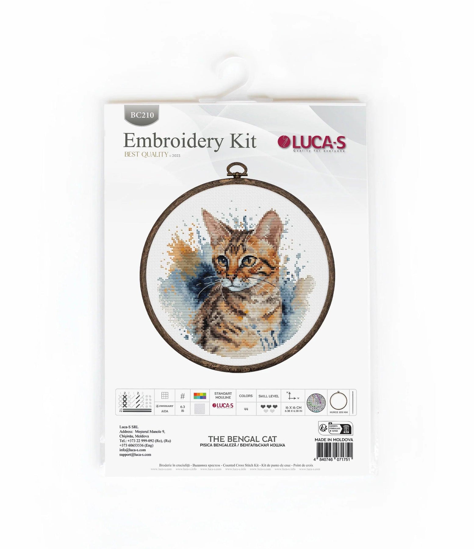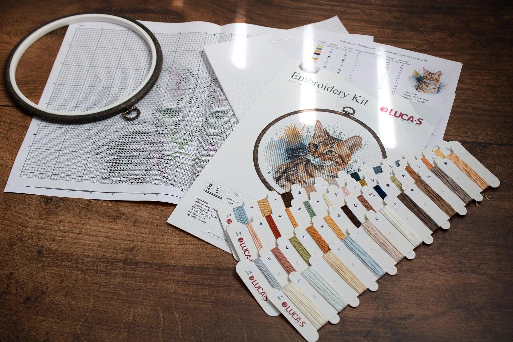 Kit contains:canvas (Aida 16/100/101), treads Luca-S(44 colours), needle and instruction, Embroidery Hoop Nurge 230 Nr.4 ( 205 mm ) - Woodgrain. Dimensions 16*16cm / 6,3*6,3in.
