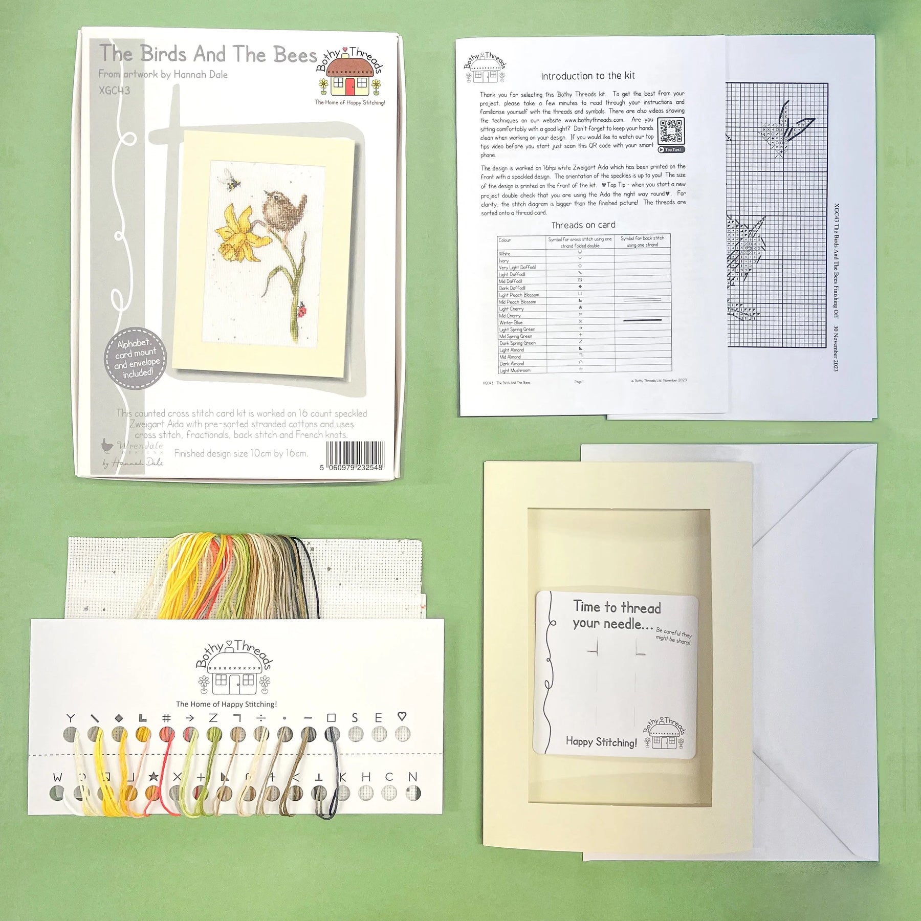 This counted cross stitch card kit is worked on 16 count white Zweigart Aida which has been printed with our exclusive Wrendale Designs brown speckle background. This design uses cross stitch, fractionals, back stitch and French knots. The kit also includes pre-sorted stranded cottons, a needle, an alphabet to personalise your design, a cream card and envelope, and a clear stitch diagram and instructions. The finished design size is 10cm by 16cm. This design is based original artwork by Hannah Dale of Wrendale Designs. It was first released on the 6th February 2024 as part of the Bothy Threads 2024 Spring Collection. Dimensions 3,94 x 6,3 inches