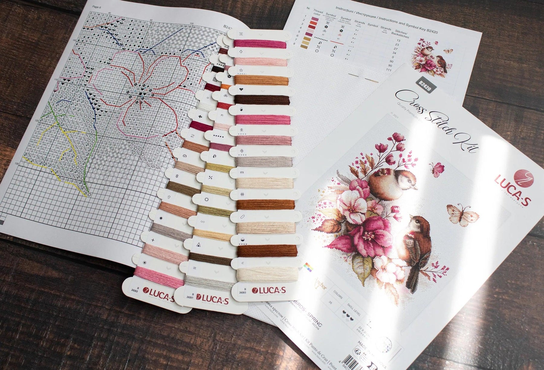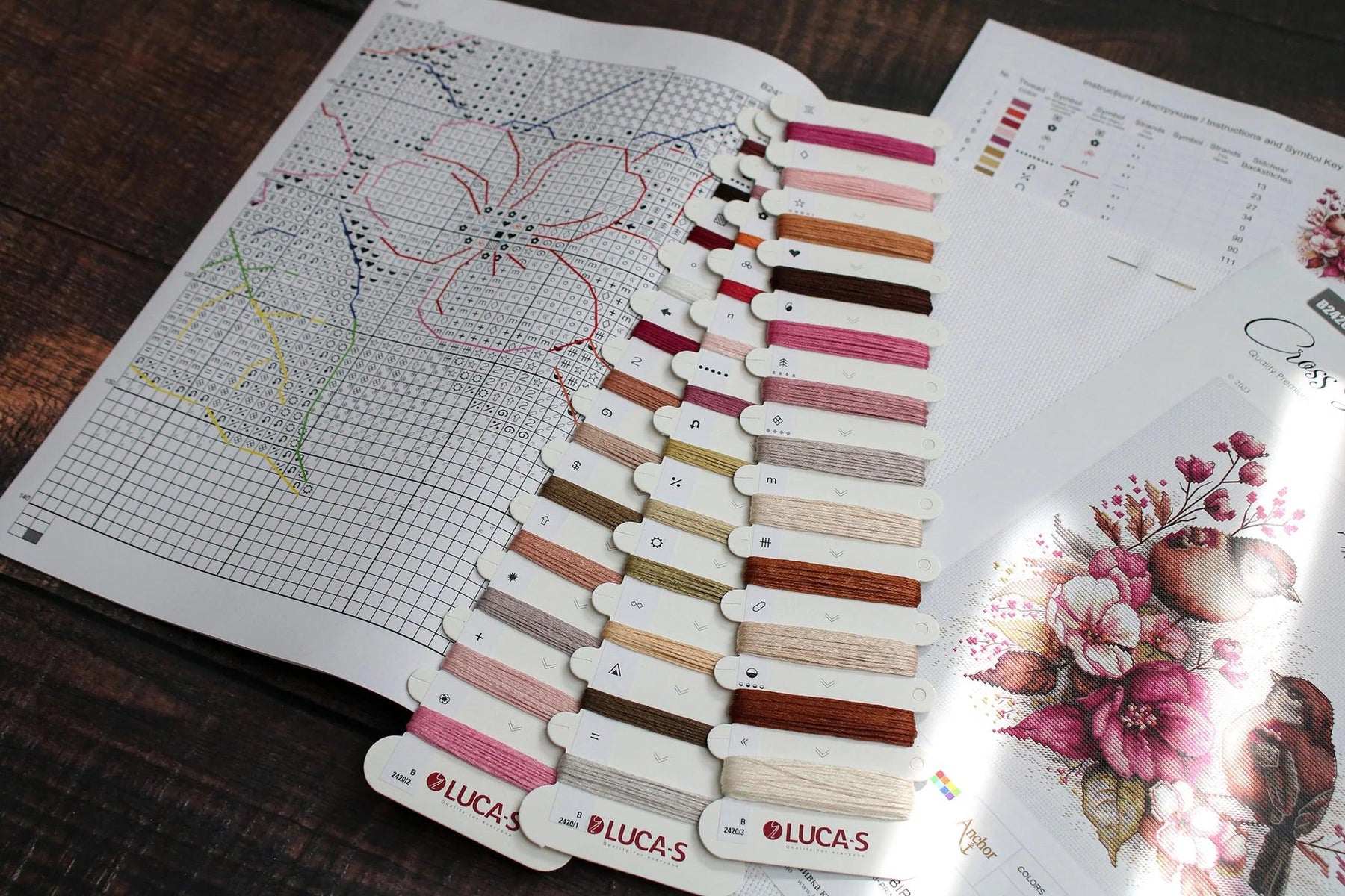 Kit contains:canvas (Zw. Aida 16/100/101), treads Anchor(35 colours), needle and instruction. Dimensions 22*21cm / 8,66*8,27in.