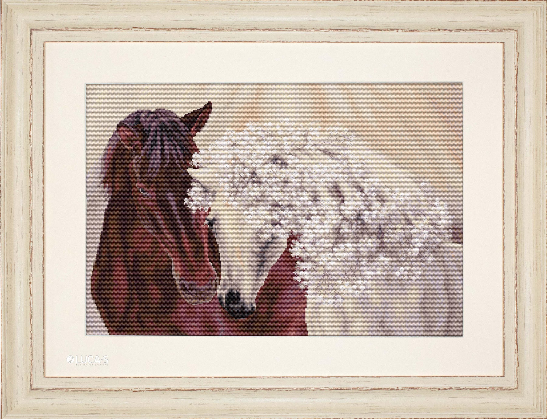Kit contains: canvas (Aida 16/100/101 Zweigart), threads: Luca-S(51 colours), needle and instruction. Dimensions 45*32cm / 17,72*12,6in.