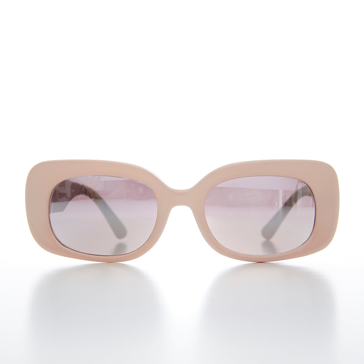 Super cute, 90s deadstock sunglass that features a bold pastel rectangular frame with light silver mirror lenses. This 60s style mod sunglass is essential to have in your sunglass collection. New old stock. Never worn. Great condition. UV Protection.