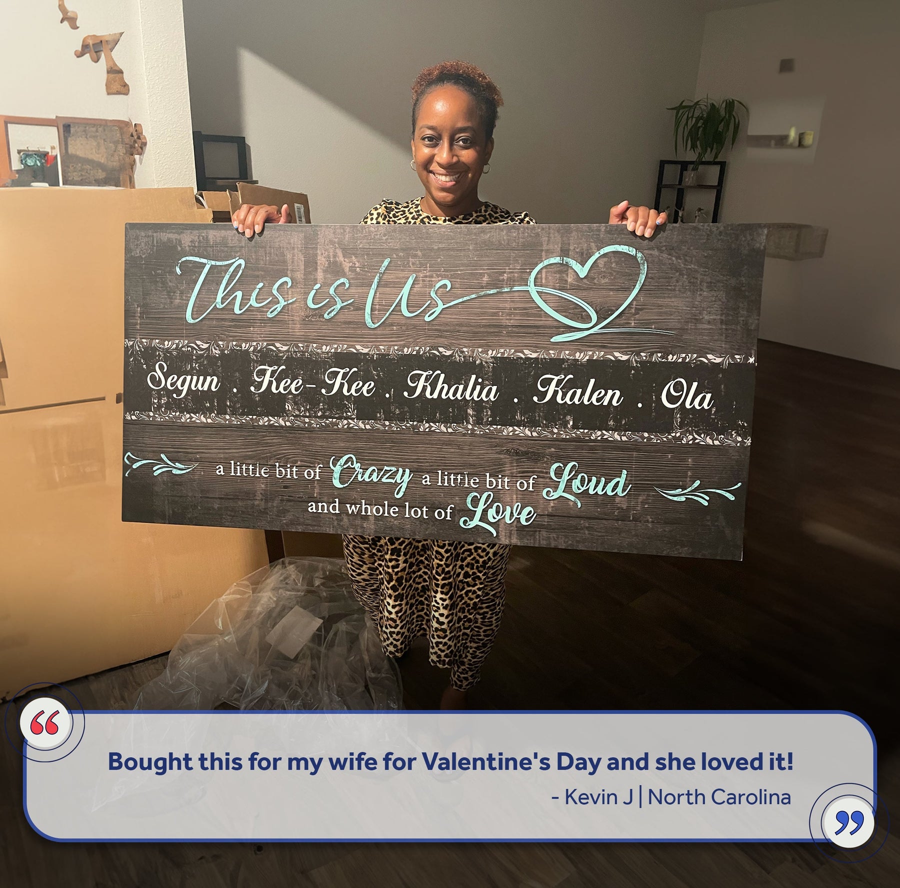 Our "This Is Us" sign is the perfect way to show off your family's uniqueness. Whether you hang it in your entryway or in your living room, the "This is Us" wall art celebrates what makes your family special.